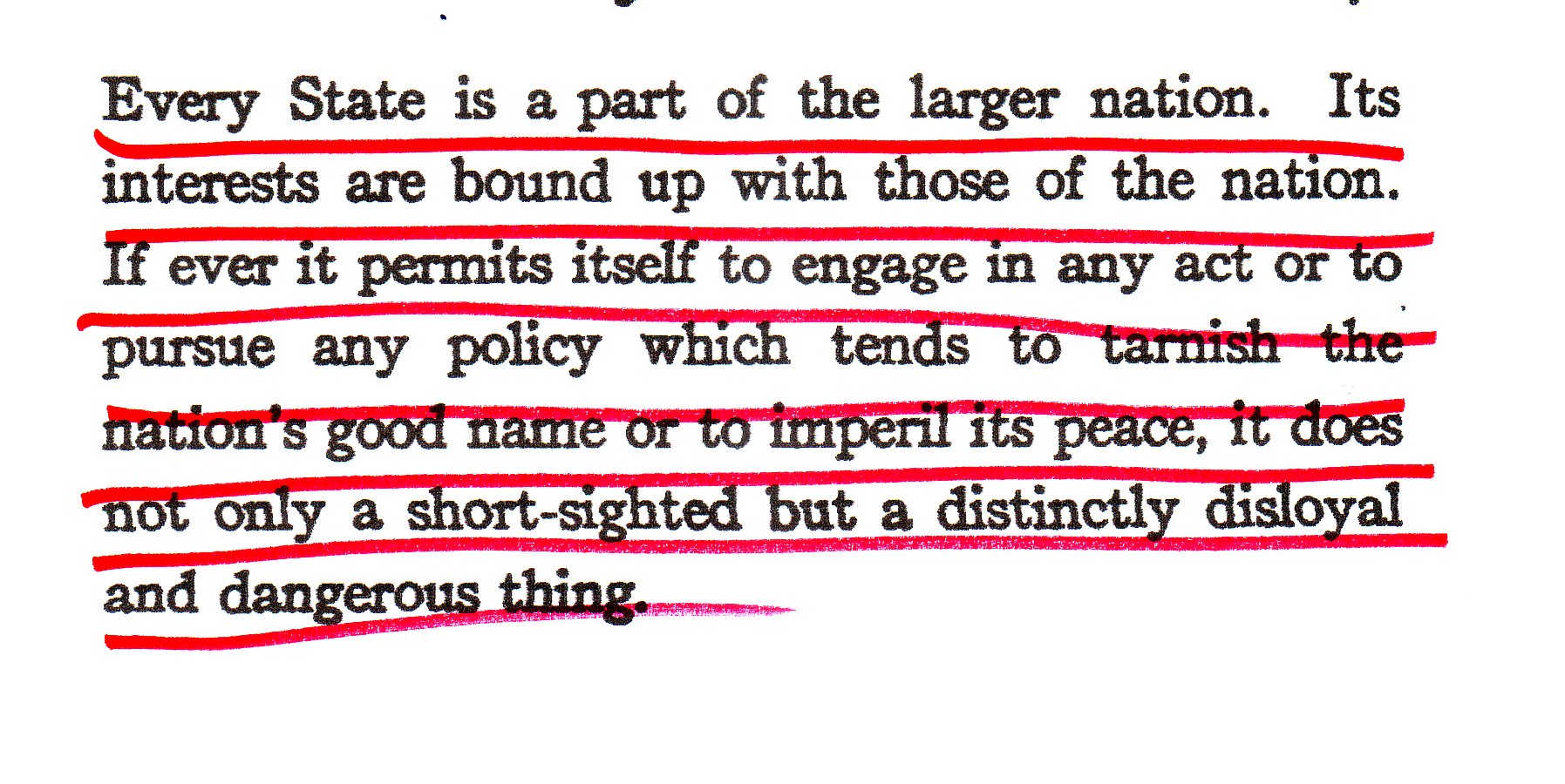 It's wrong, he says, for one state to do things that reflect negatively on the other states.