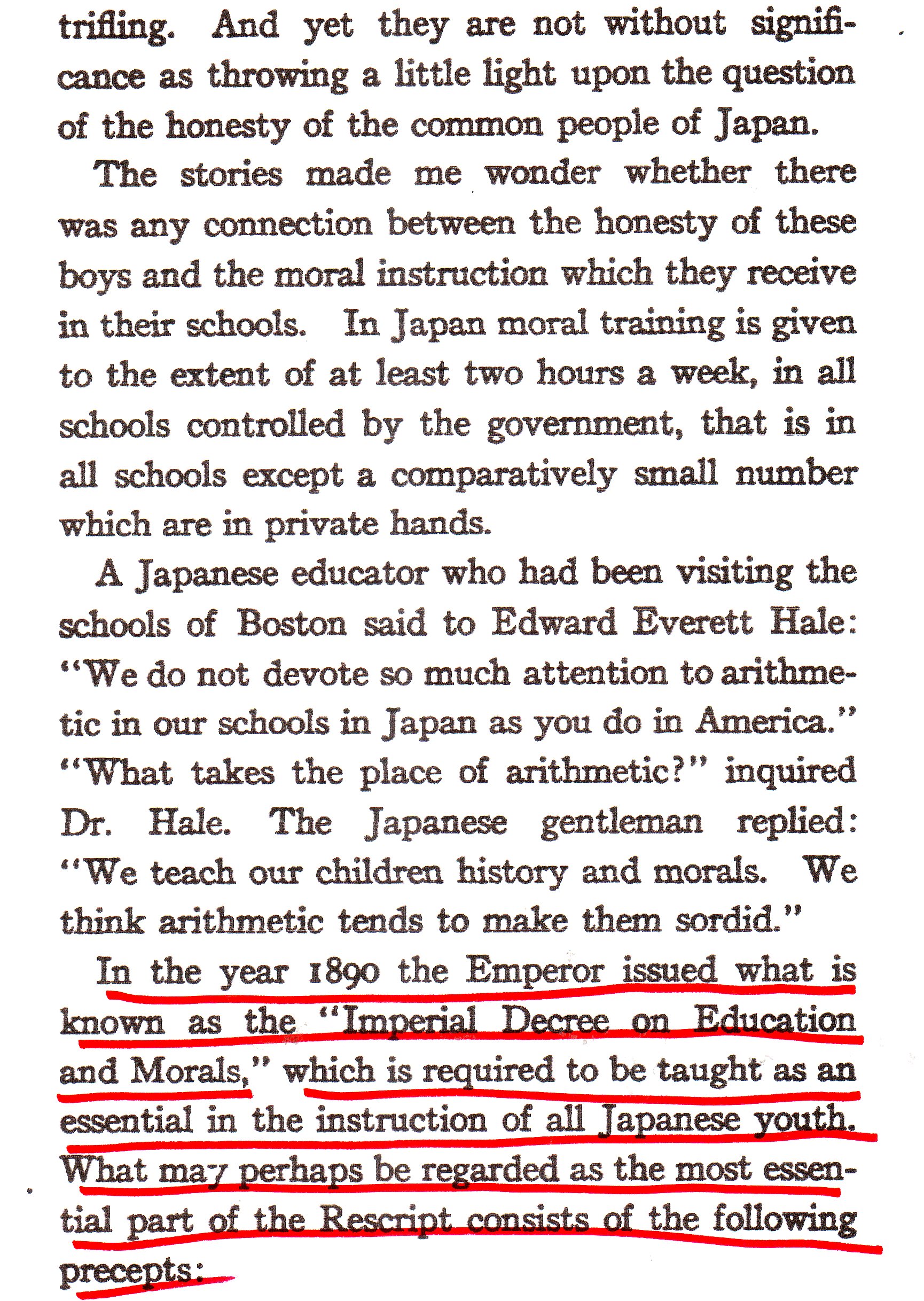 The Imperial Decree on Education and Morals, given by the Japanese emperor in 1890, is discussed.