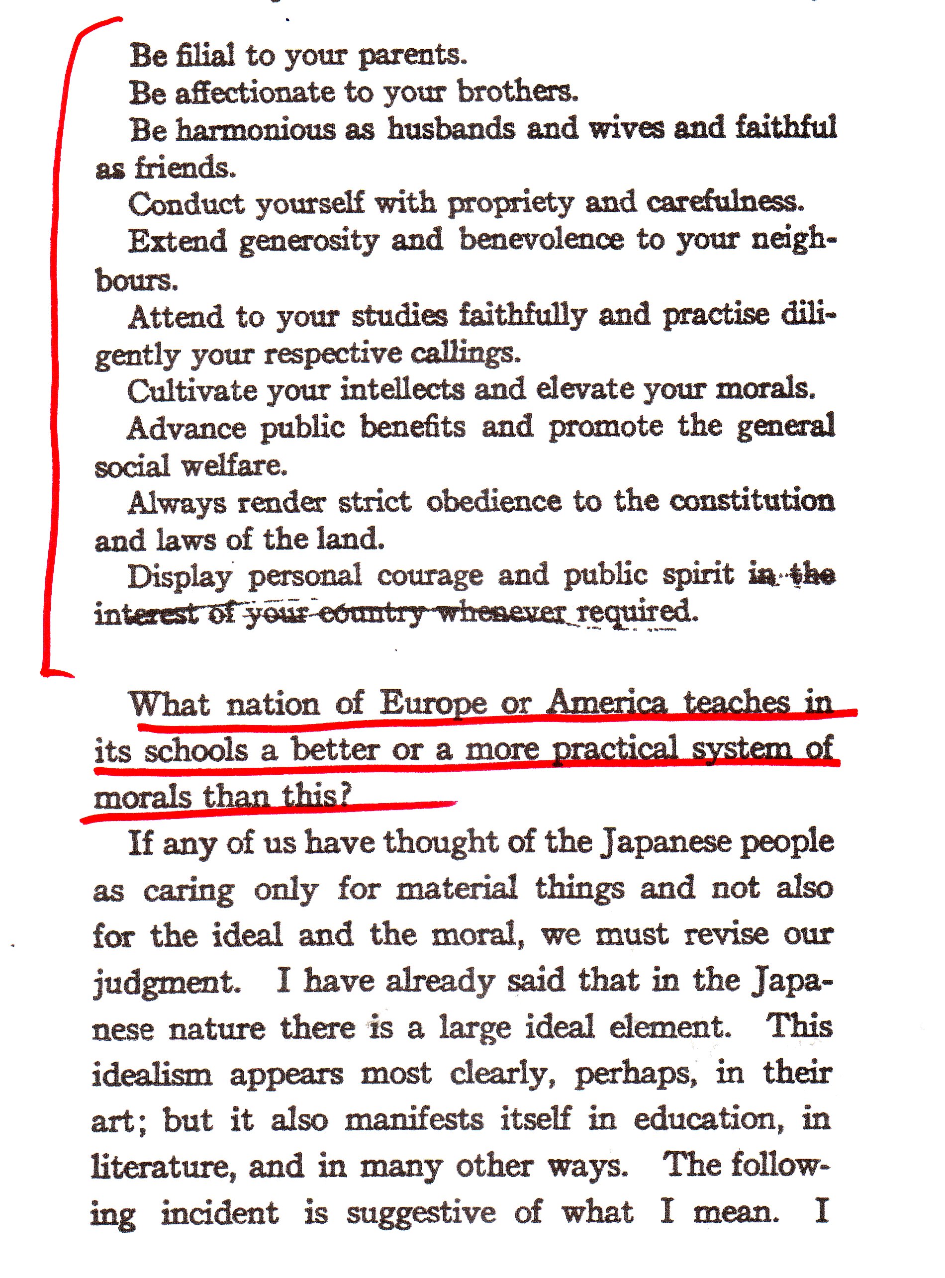 I don't think you could find a better code of ethics if you tried. The Japanese were definitely “civilized,” and by using these standards as a basis for comparison, they were (and are) more civilized that the U.S.
