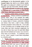 The author begins to point out some of the bad consequences of the anti-Japanese discrimination.