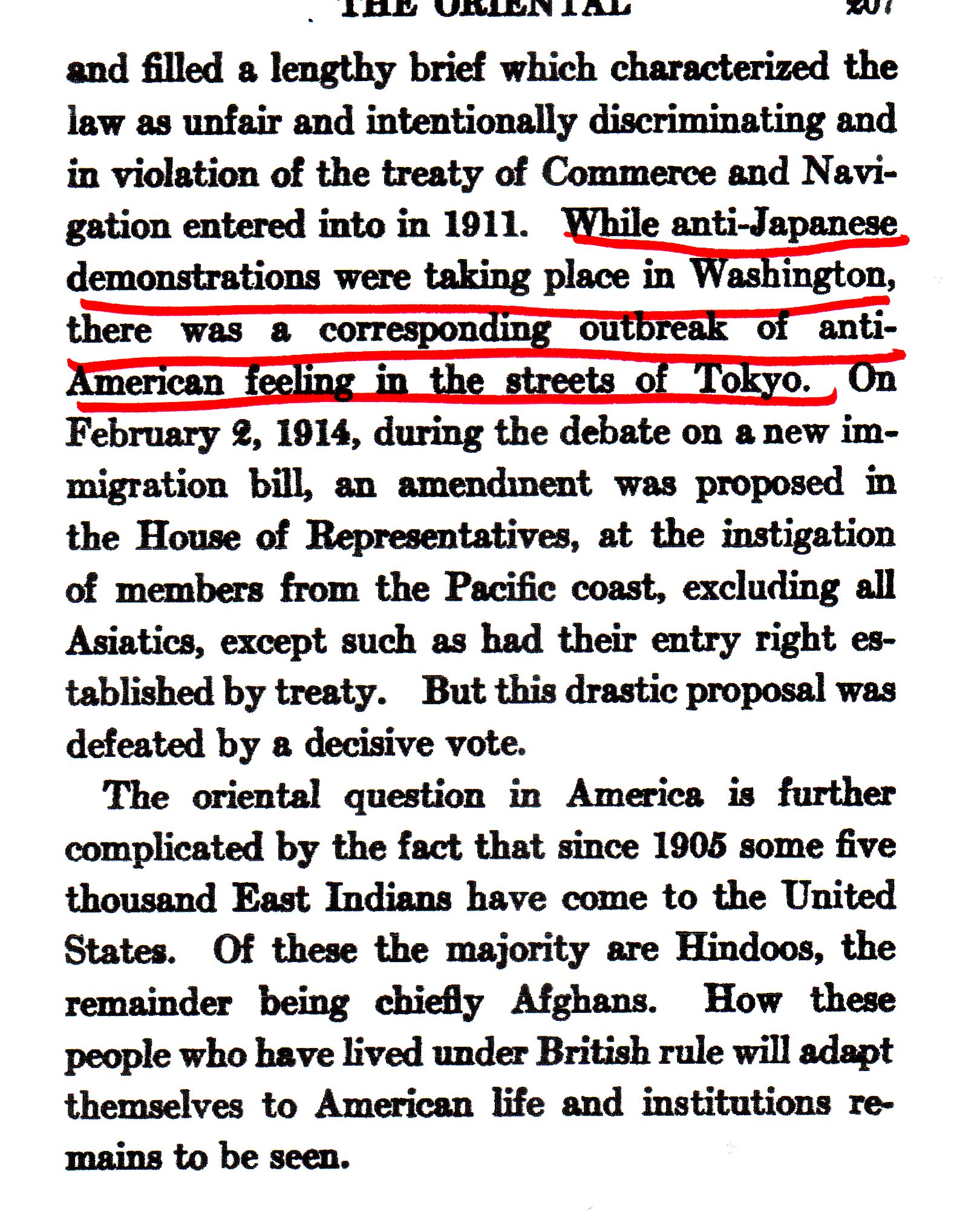 What does around comes around, though. There were anti-Japanese outbreaks in Washington, and anti-American outbreaks in Japan.