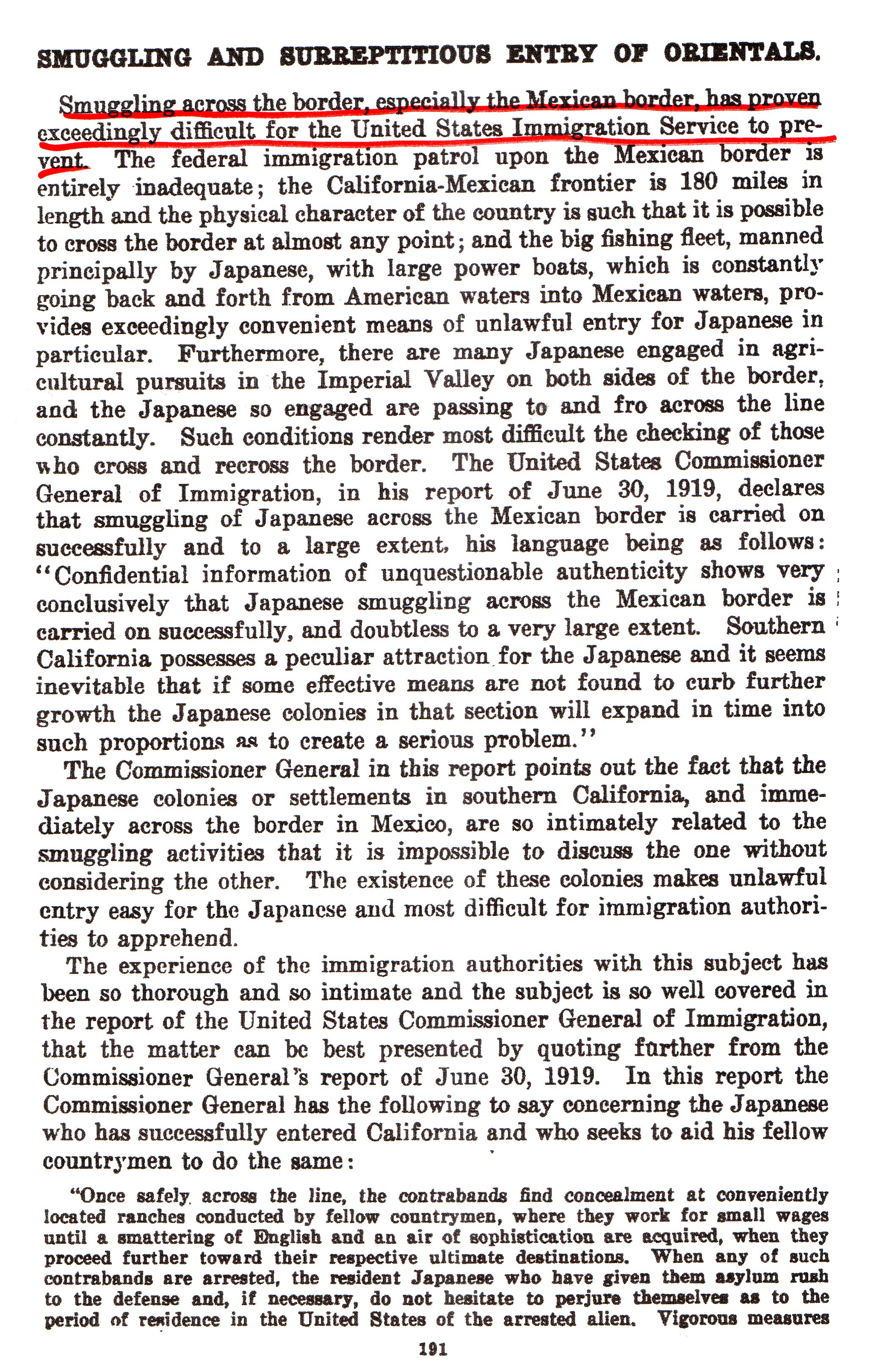 Smuggling Japanese across the Mexican border is a source of trouble, according to the writer.