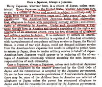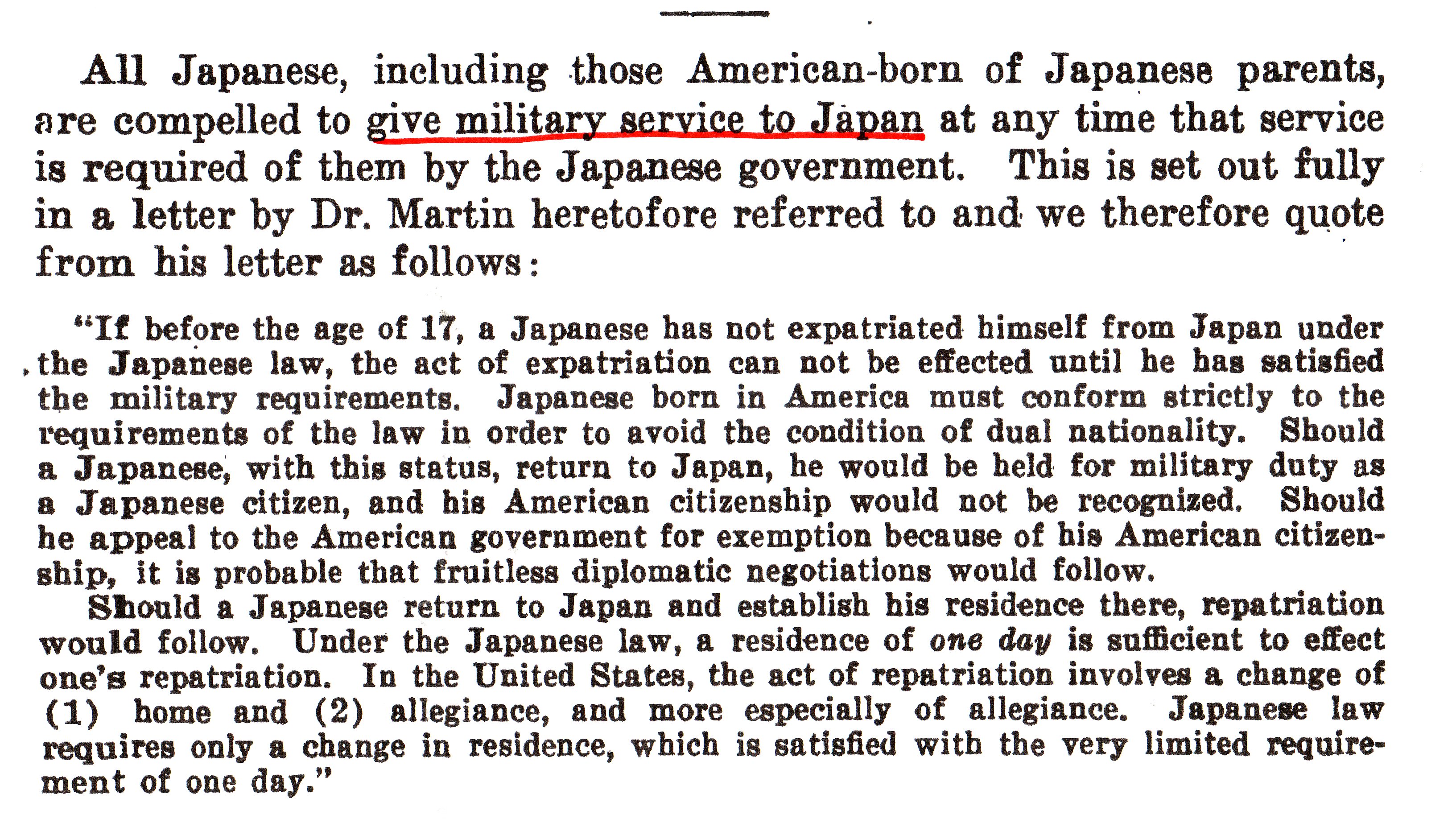 Each Japanese immigrant, according to the author, is duty-bound to serve in the Japanese military at a moment's notice. “Once a Japanese, always a Japanese,” the author adds.