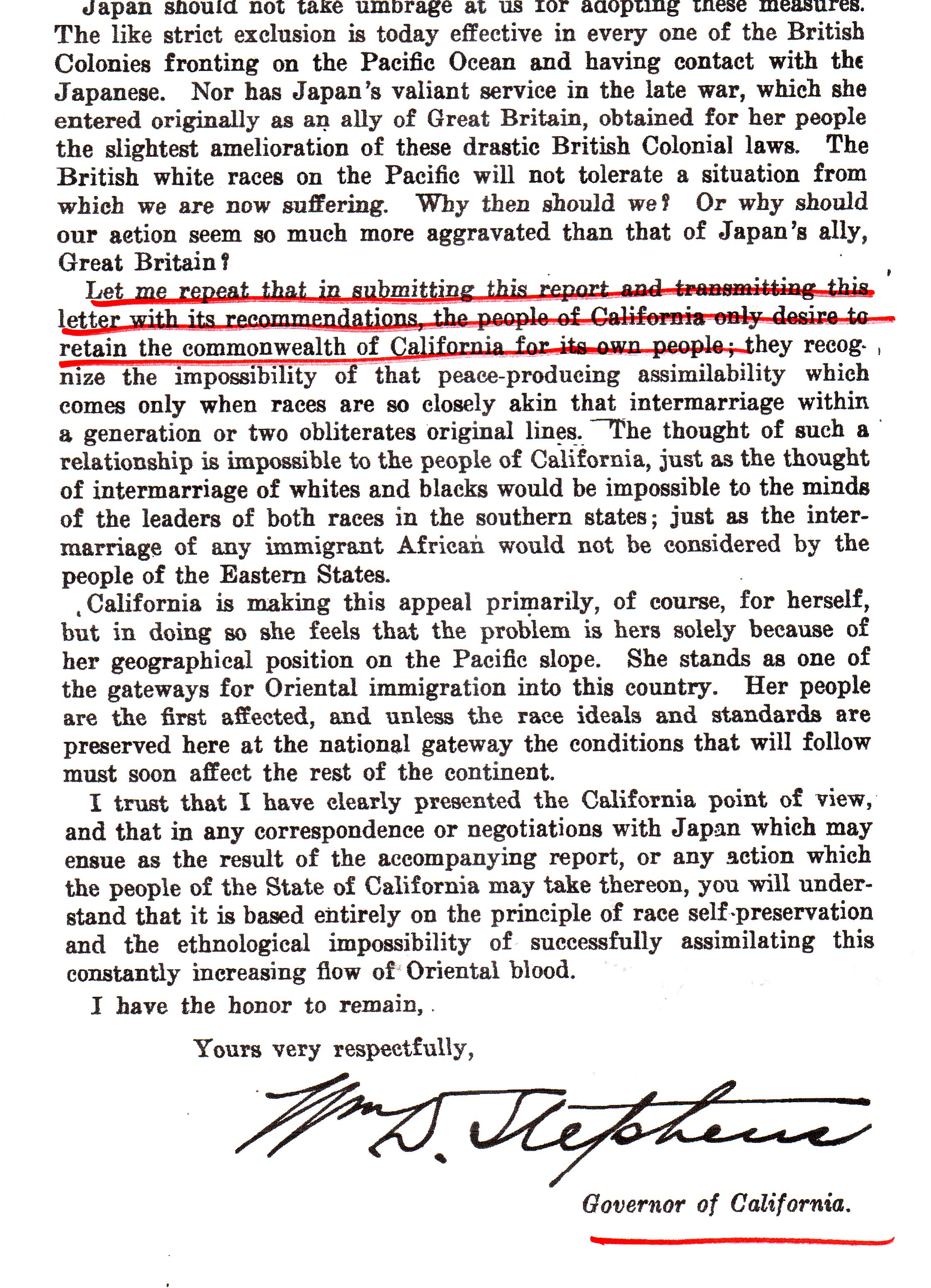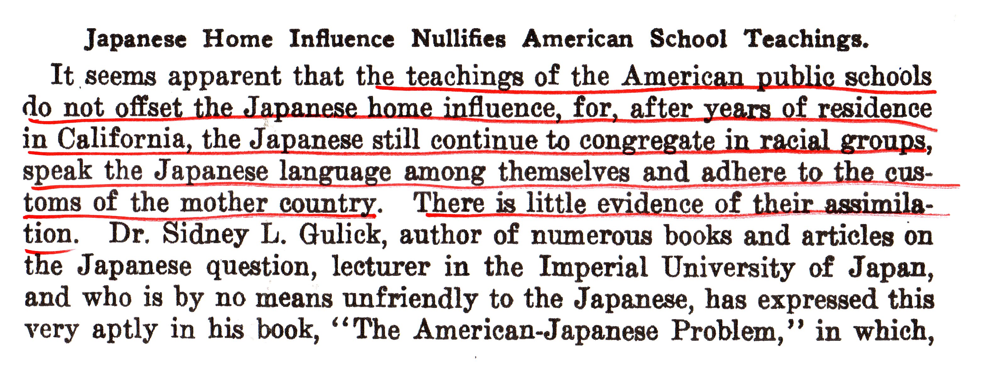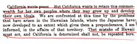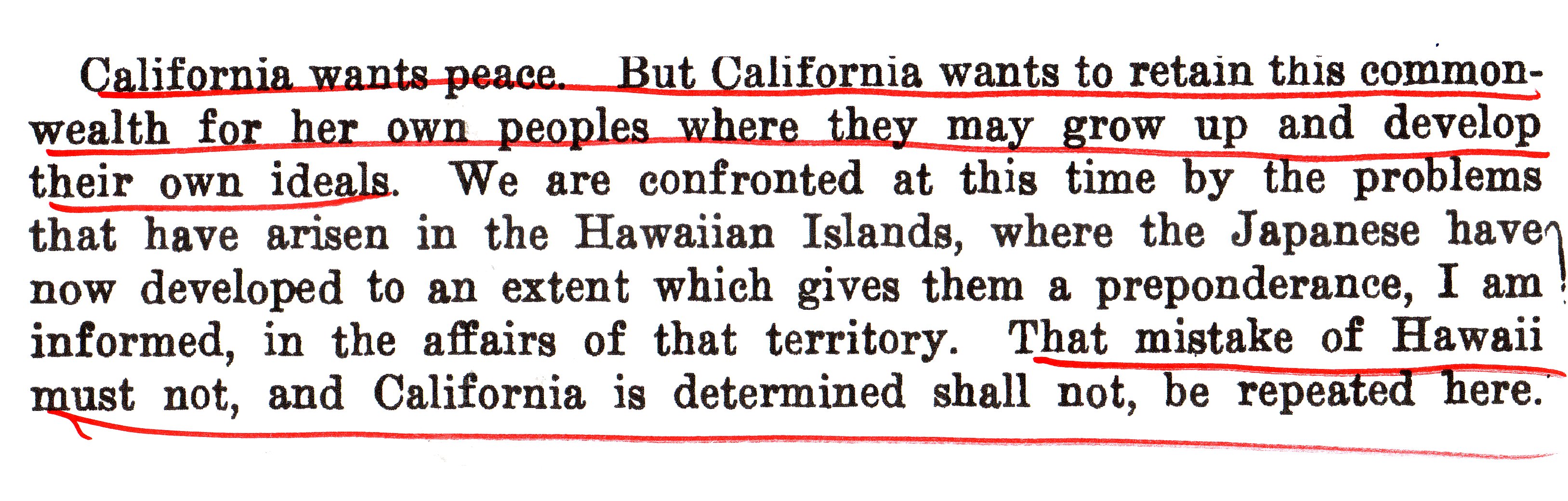 The author starts out by saying that “California harbors no animosity against the Japanese people or their nation” which was, at the time, a bald-faced lie.