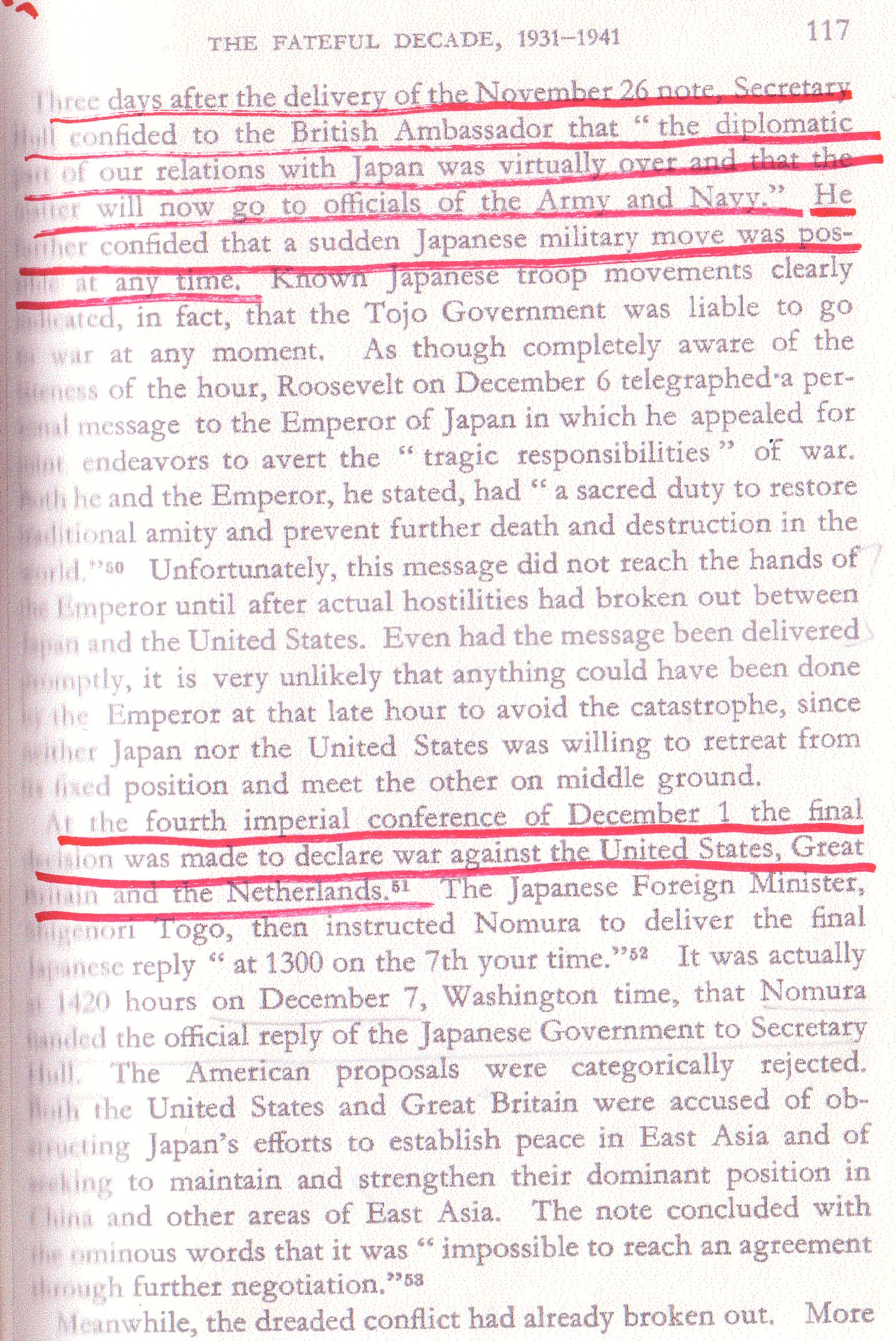 This shows that the government knew that war against Japan was very likely at least as early as the last week of November, 1941. If the threat of war was so imminent, why were so many ships docked at Pearl Harbor at the same time? Japan had attacked another country on a Sunday, so why didn't it dawn on the minds of decision makers that the same type of thing would happen to us?
