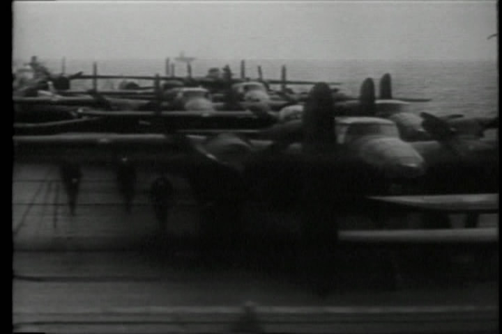 A Japanese bomber is attacked. The film says the Japanese lost 60% of their attacking force.