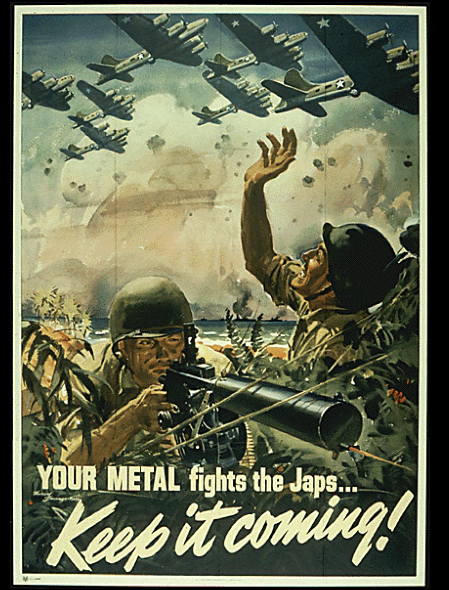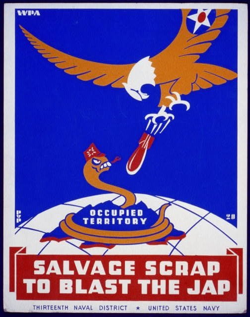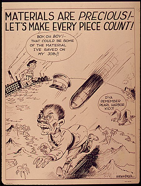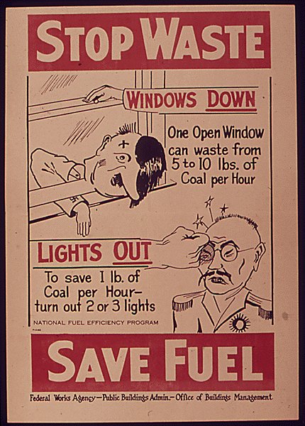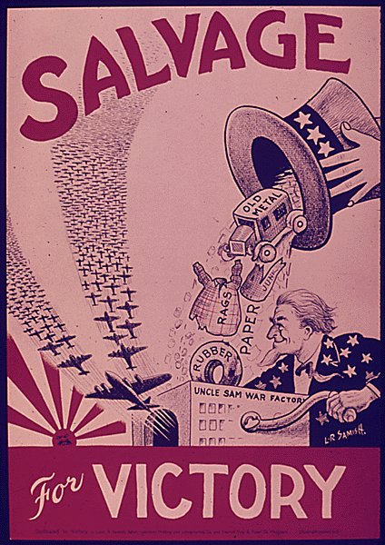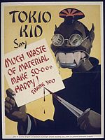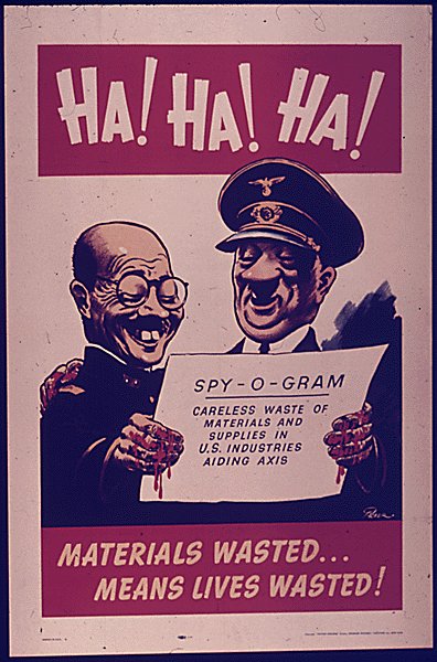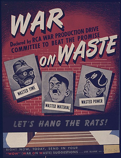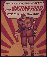 Posters relating to not wasting things included not wasting food and not wasting scrap materials.