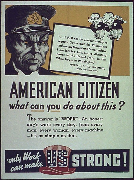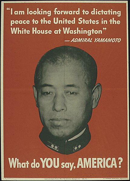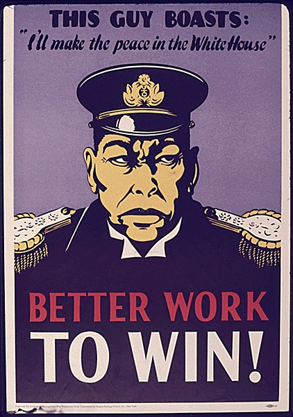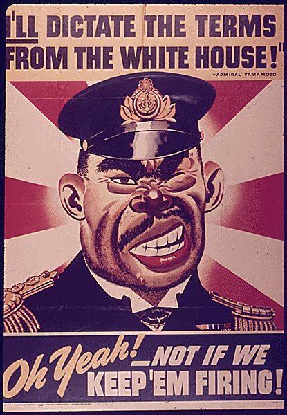 Yamamoto came in for a series of posters. He had made a statement about dictating terms of peace from the White House after Japan beat America, and that didn't sit any too well with the poster makers.
