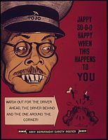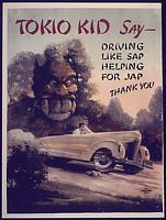 There were even posters that dealt with people trying to avoid accidents. Both of these feature the stereotype Japanese appearance, although the one on the right s rather spooky, in my opinion, at least.