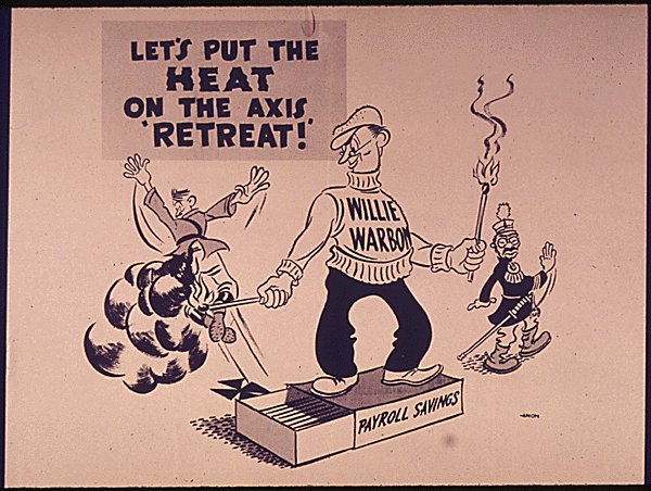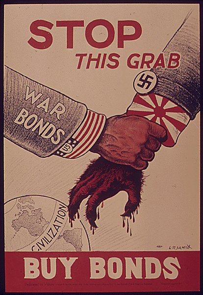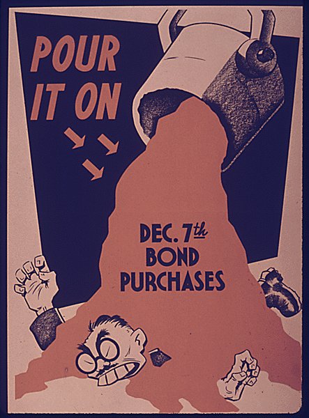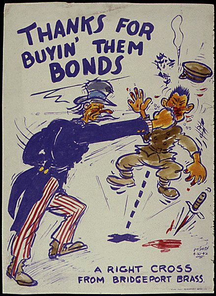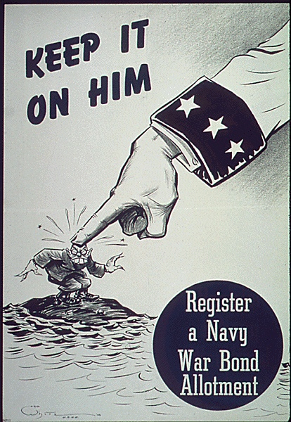 A number of posters deals with these three areas as do numerous cartoons and even the short film "Avenge December 7", which exhorts people to remember Pearl Harbor and to buy bonds.