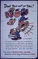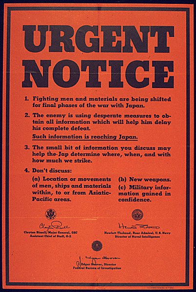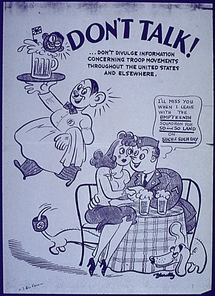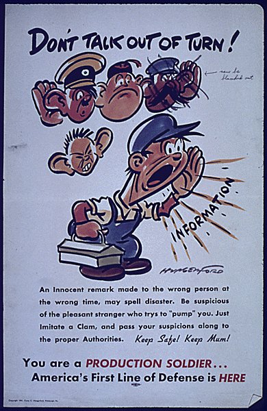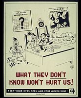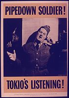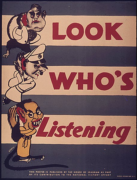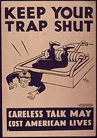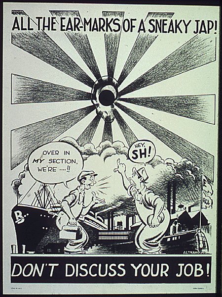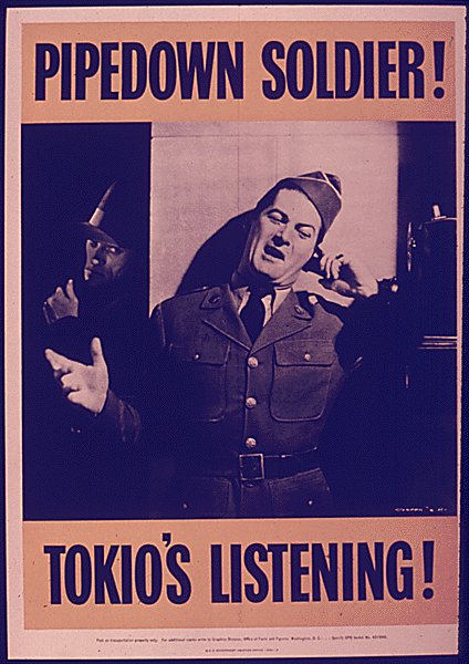 One of the old war sayings. The idea was that you had to be careful who you talked to, since spies could be anywhere, or at least that was what was believed at the time. The Japanese-Americans were especially vulnerable to the charge even though the spying that was done was done almost exclusively through the Japanese consul offices.