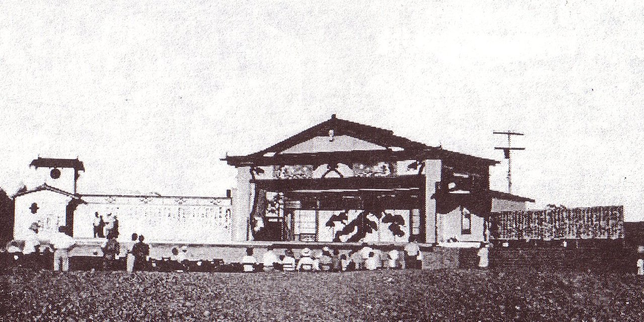 Overall Community Council of the three units. Japanese garden in background next to Administration building, which is being completed by the evacuees. |