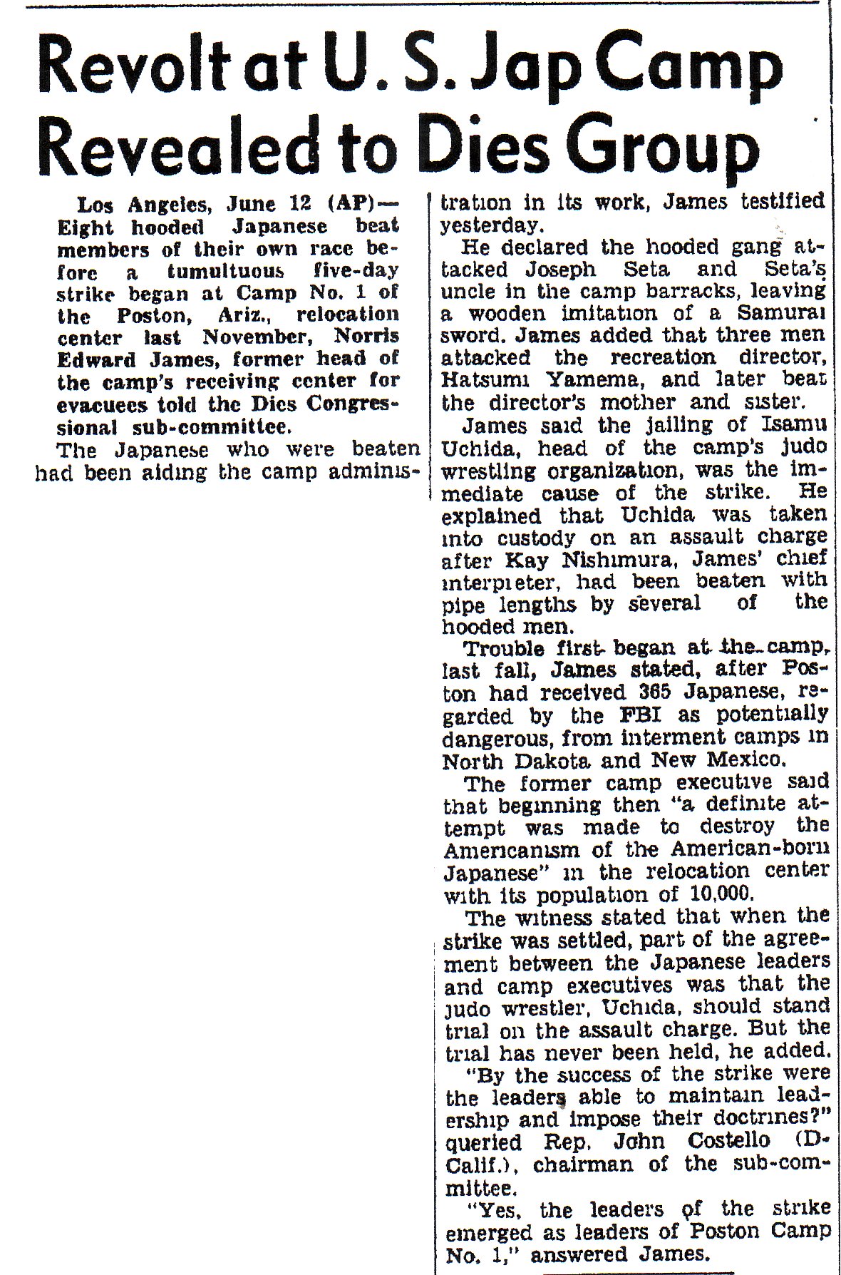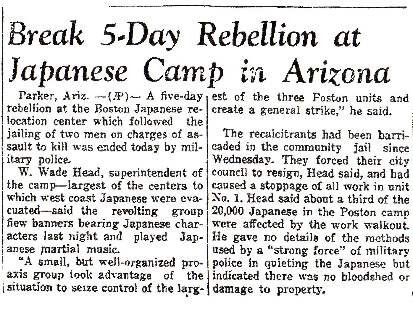 The government report "Riots, Strikes and Disturbances in Japanese Relocation Centers (1943) comments on some of the problems at the Poston camp: