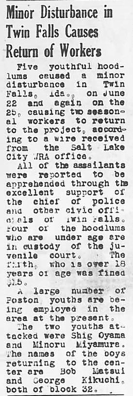 Page 4: Briefly; fourth of July program set for unit II; new relocation interviewer; conservation of water asked; melons to be harvested soon; Mary Kato leaves AG.