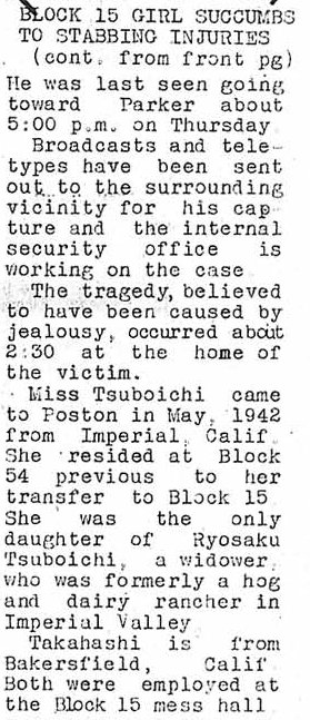 Page 1: Higa will speak here next week; block 14 resident commits suicide; more leave for Army; story of Nisei soldier in Italy will be told on Today's 'They Call Me Joe' radio program; twenty Japanese language drillmasters wanted by Stanford's civil affairs training school.