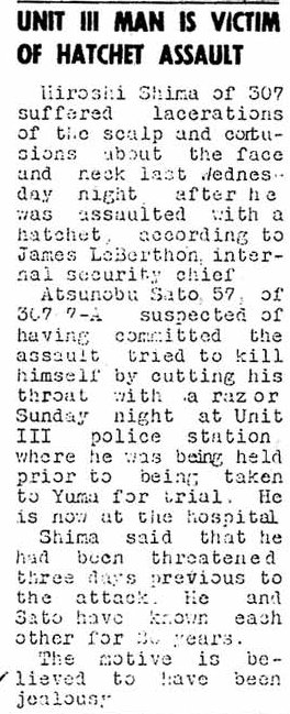 Page 1: 17 center families now employed at Tooele depot; Pfc. Tashima seriously hurt in France; block 39 reports 20 sons in service; mass exclusion terminated.