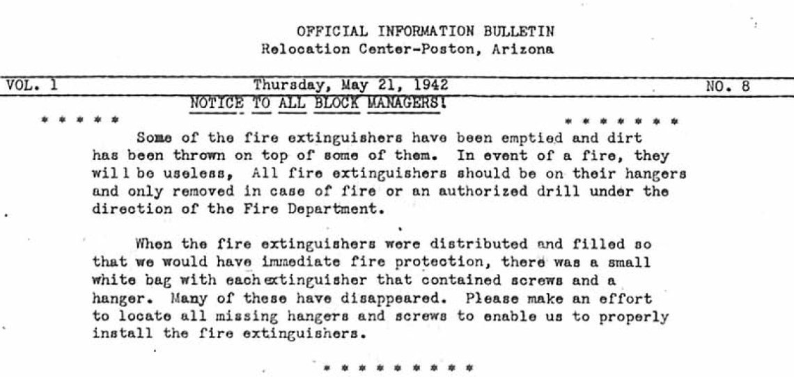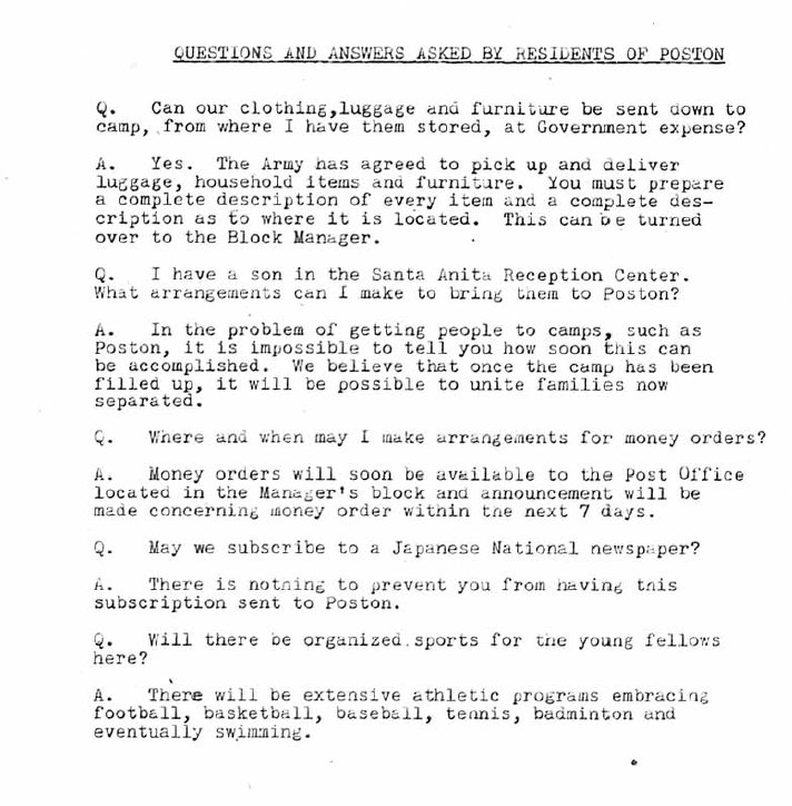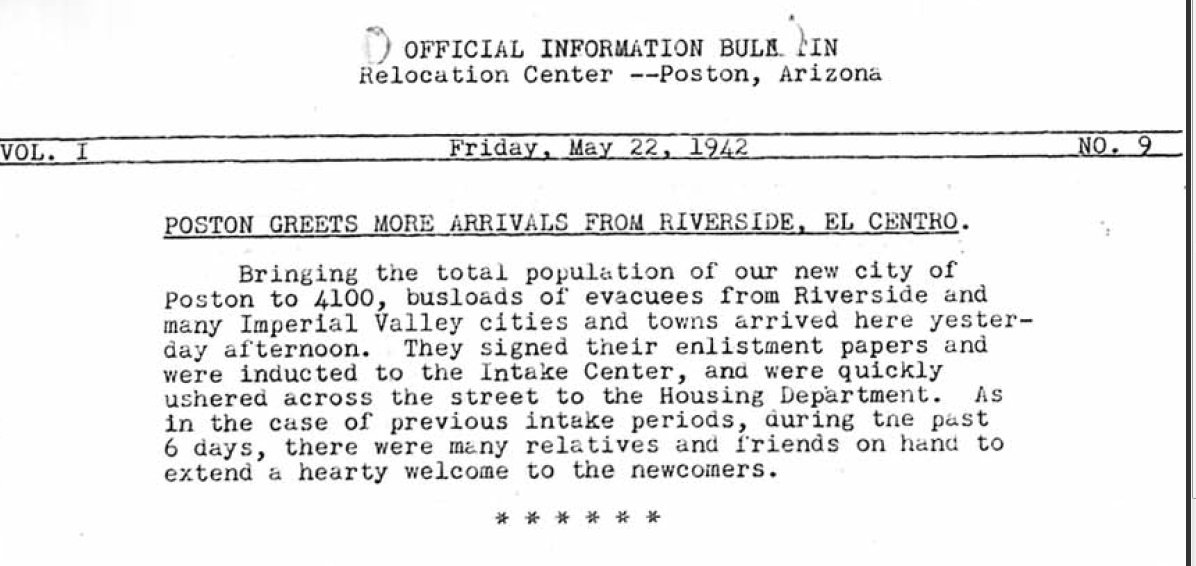Page 1: There are over 3300 people in the camp at that point. There are articles about typhoid innoculations, nurses are needed, and an article on employment. Sunday school teachers and religious workers will meet. A ball field is being cleared off. There will be a meeting for those interested in badminton, and there will be a dance for high-school age boys and girls.