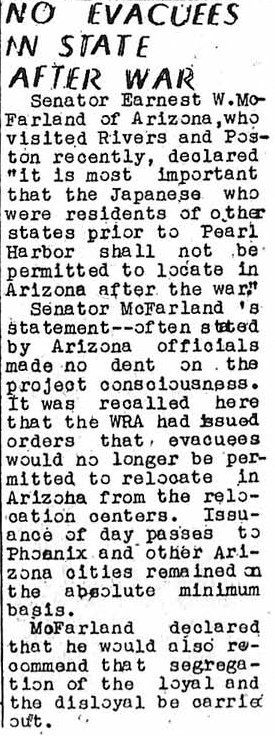Page 1: YMCA member to arrive in Poston; canal building to employ worker; Hawaiian Nisei eligible for return; Chicago accepts evacuee pupils.