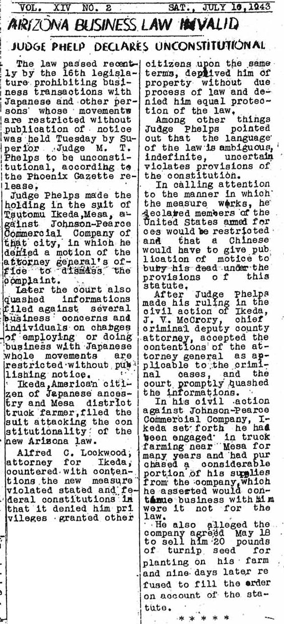 Page 1: 2542 left Poston since February; new AG head; two crews on insect control; service flag to be displayed; selective service to be held for boys 18 years.