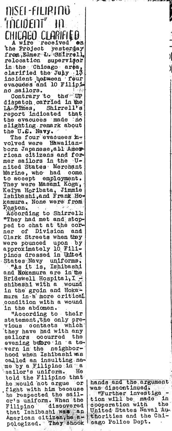 Page 1: Center Nisei graduates M.I.S.; job offers total 454 for June; Poston leads center in departures; Minidoka cuts workers to 2874; two fire trucks added to dept; men on tour.