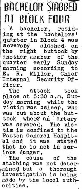 Page 2: Maryknoll sisters conducting classes; eggplant plants available for residents; Rev. Hulet outdoor worship speaker; births top deaths for the month of July; national YB prexy to speak; 2748 evacuees on leave from Poston; clinic hours at the Poston general hosptial.