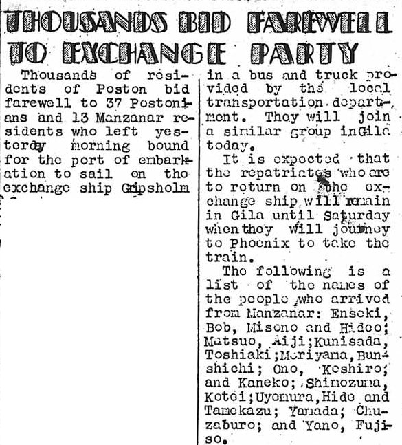 Page 1: Volunteer given good send-off; no Tule for segregants who applied after July 1; population of Poston now under 15,000; Chicago's hostel accommodates 600.
