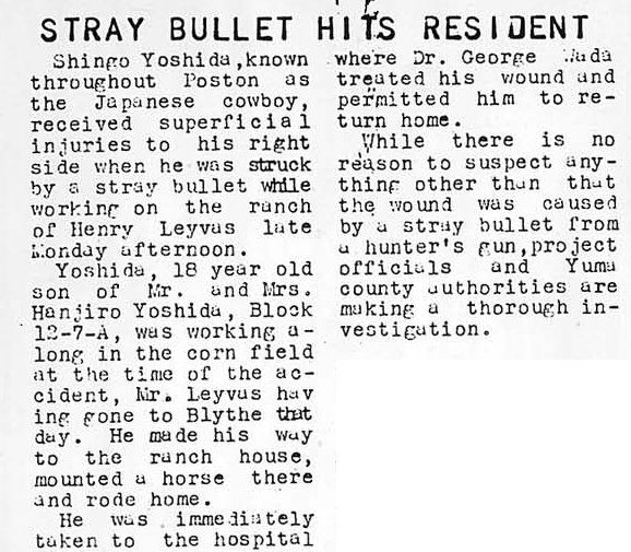 Page 1: Shop class to train on Model T; labor relations board and executive board combines; Poston milk situation; population now 13,142; employment car overturns; money on camouflage arrives; Dr. Kawaichi joins Army.