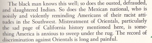 “It was greed. A century later, Japanese Americans were to taste a little of this greed. It was mixed with the hysteria. In eviction and evacuation, there was historical precedence.”