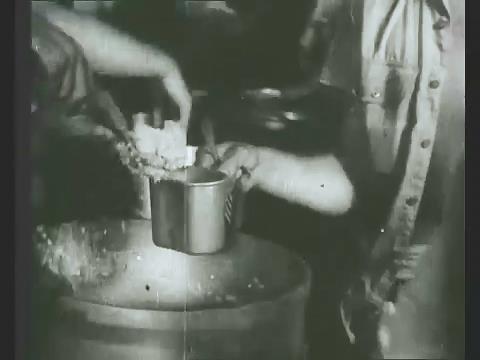'The food eaten by the prisoners was little better than garbage prepared in filthy conditions' says the Australian narrator of the true parts of the film. This must have been something shot separately after the camp liberation.
