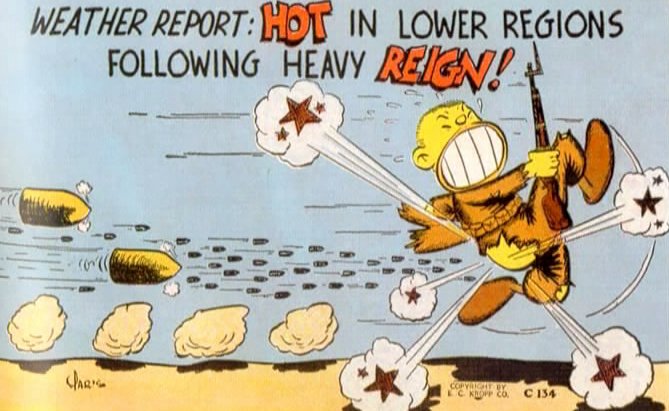 An OWI spokesman said he thought one of the best war songs he had heard was “Der Fuhrer's Face” from the Disney cartoon. (HW)