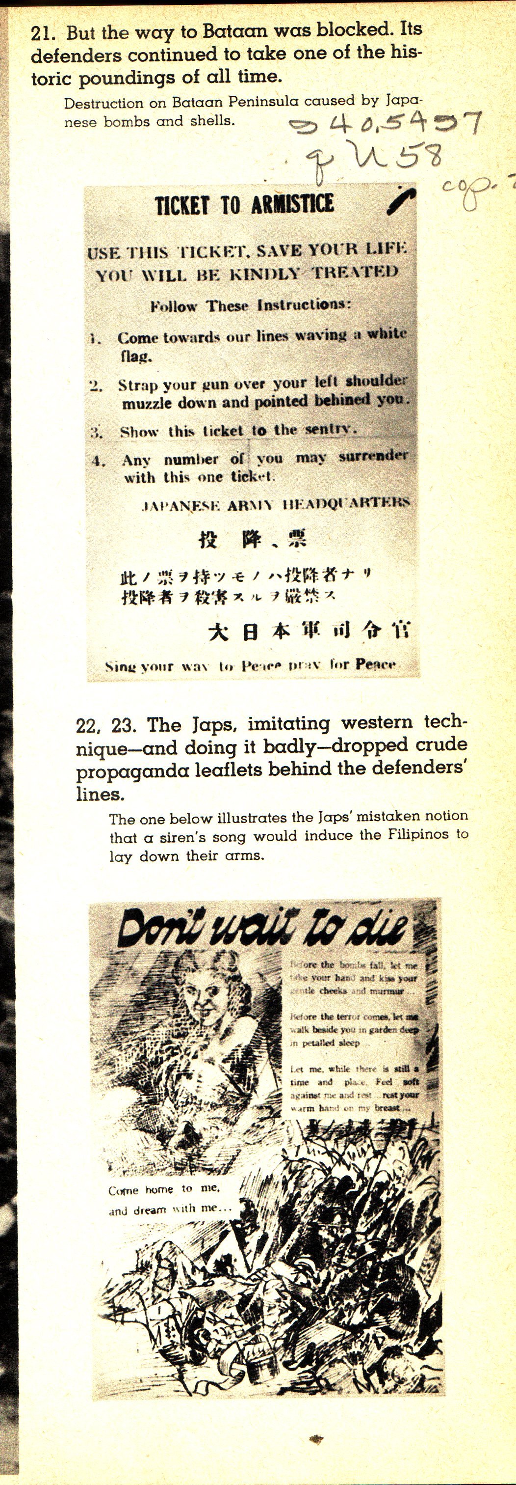 1942: Victory Song of the Orient is produced by the army in the Philippines. American stores, posters and fashions are shown as corrupting influences. Most of the film was about the technical aspects involved in provisioning the army and what the normal, non-fighting, activities were.