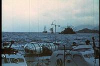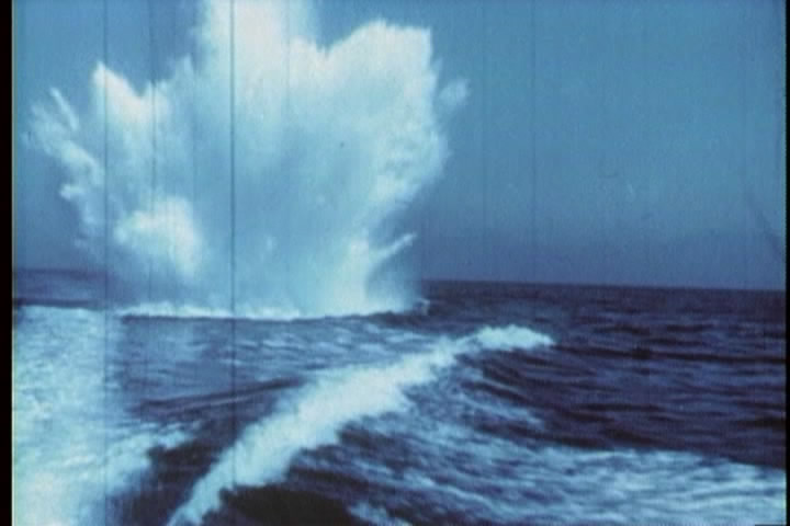 The film says there is almost daily contact with enemy subs, but very few ships have actually been sunk. Destroyers use depth charges to attack subs.