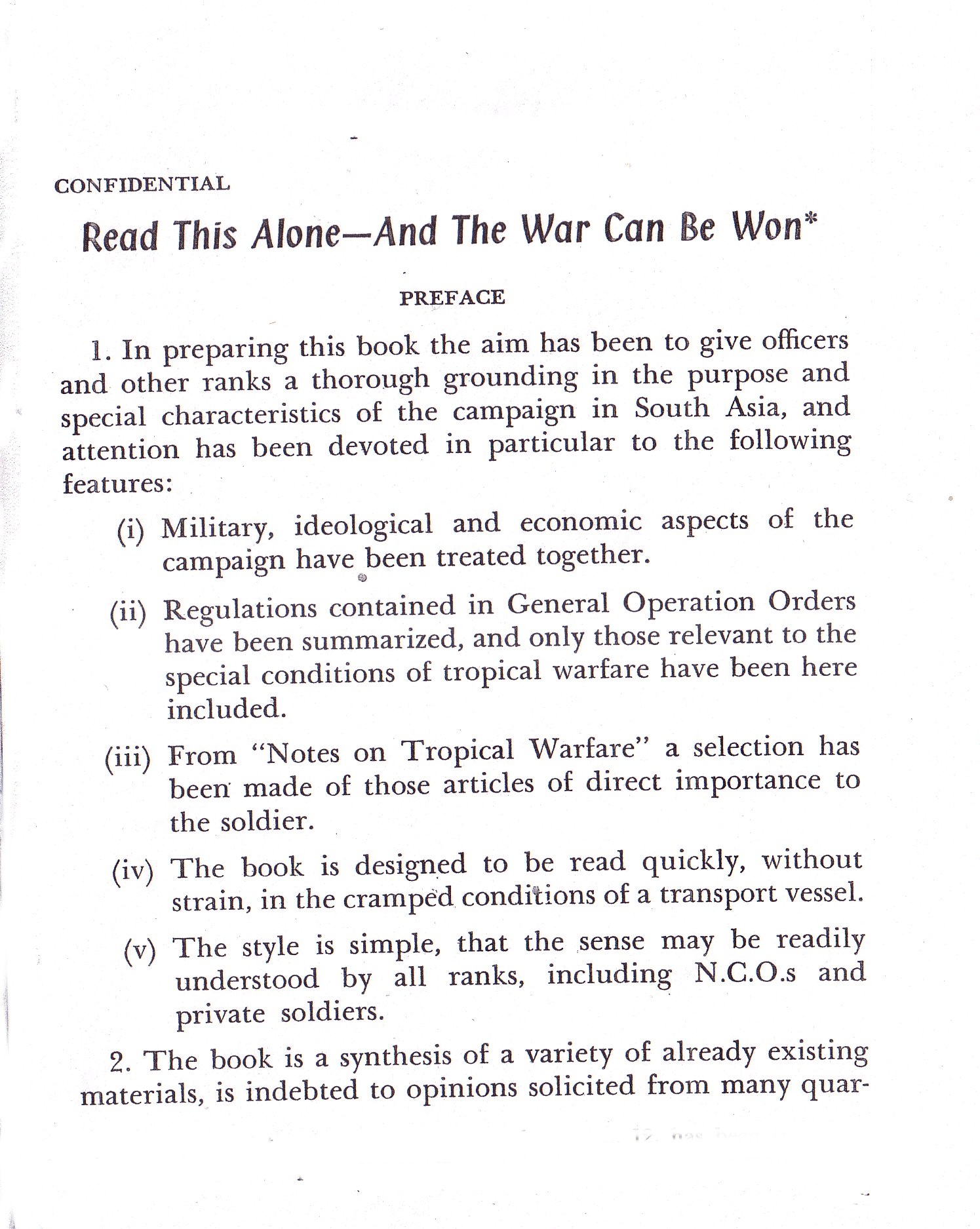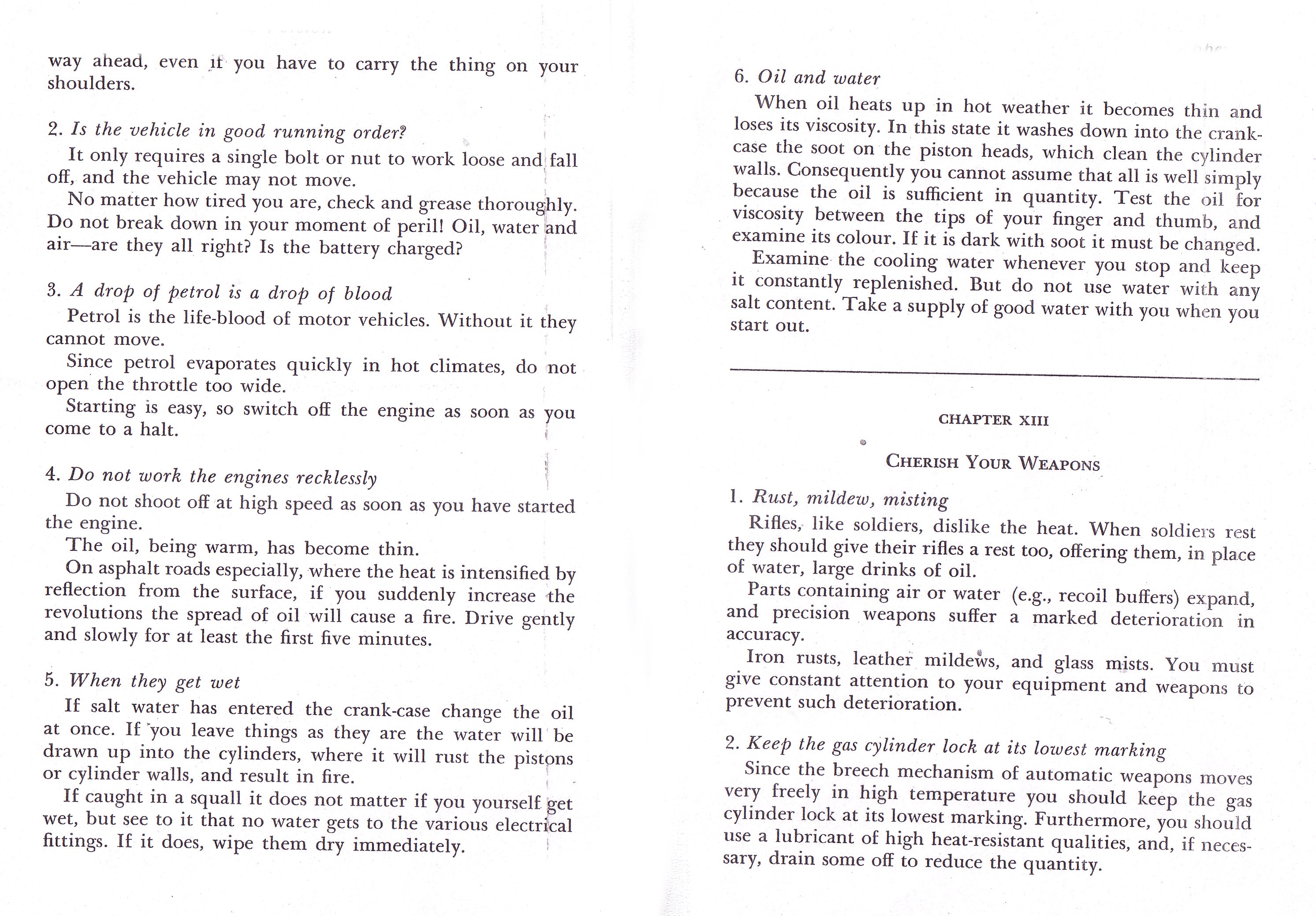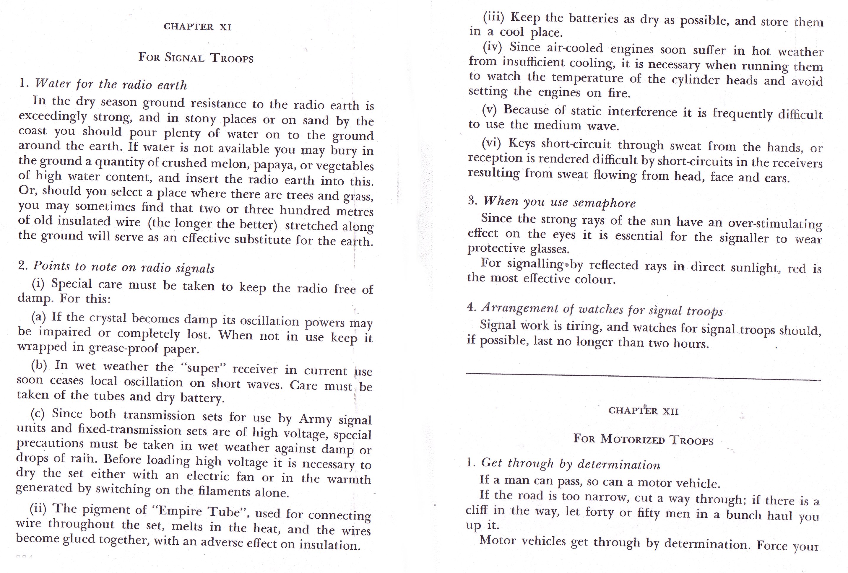 A strong put-down of Westerners is contained in section 2 where it says that Westerners are “...very effeminate and very cowardly-have an intense dislike of fighting in the rain or the mist, or at night.” This is one of the areas where both sides made the same mistake – they underestimated the ability of the soldiers of the other side.
