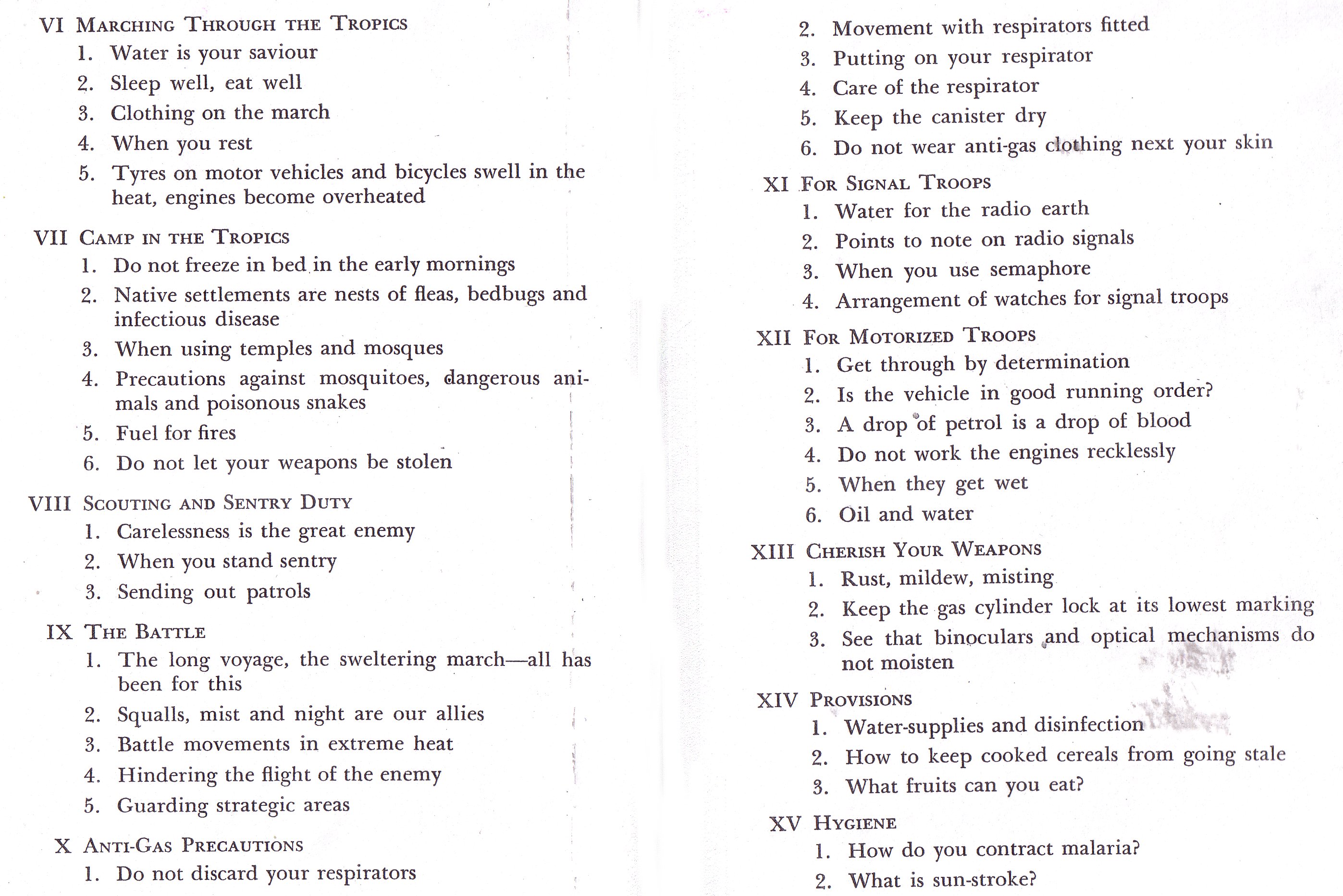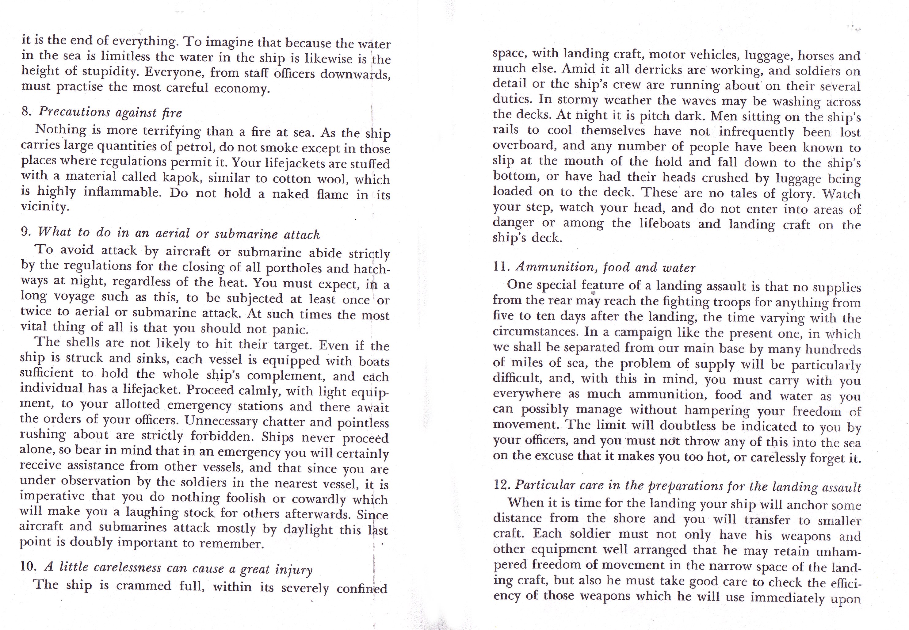 I've referred to this book elsewhere on my pages, and I finally managed to find it reproduced. It was basically written for the soldiers to explain in as simple language as possible everything they needed to know about going to war. They could read the book while on transport ships.