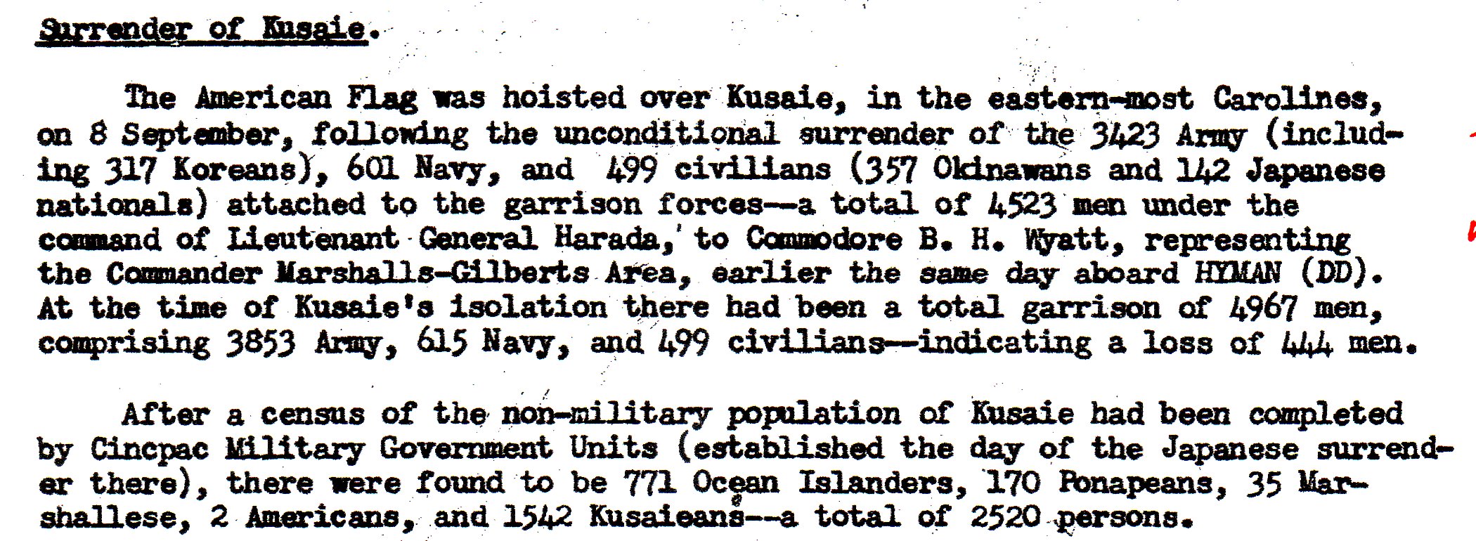 Kusaie, in the Carolines Islands. Most of the group of troops and civilians had survived.