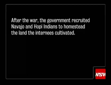 The video talks a lot about the relationship of the internees to the Native Americans, and how the Native Americans took over the area once the internees were finally freed, and were able to benefit from all the work that had been done to the land. It was a very great benefit for the Native Americans.