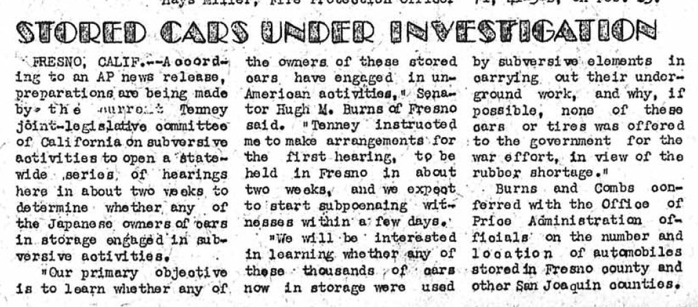 In what has to be one of the most ridiculous investigations ever, some stored cars are being studied because they might have been used in sabotage. Vicious, nasty cars all huddled together in storage, planing their evil plans with their twisted metal brains, just waiting to rush out and overthrow the government.