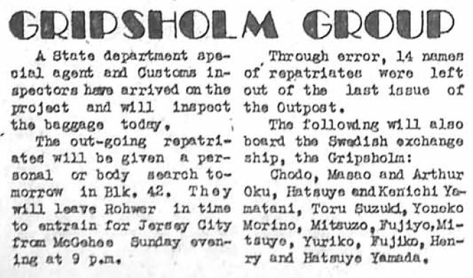 Page 1: Preparations made; Gripshold substitutes go to Tule Lake via Rohwer; I.S. declares certain articles contraband; Nisei women eligible for nursing school.