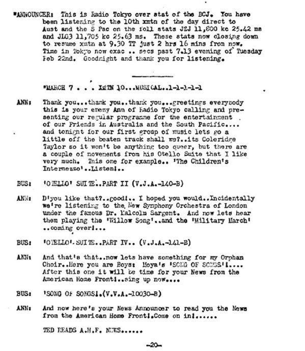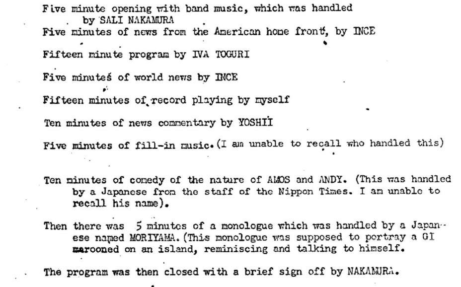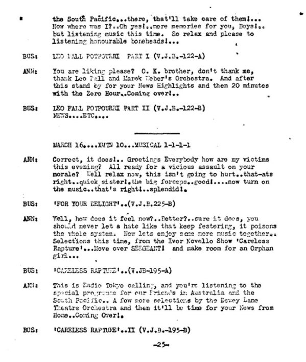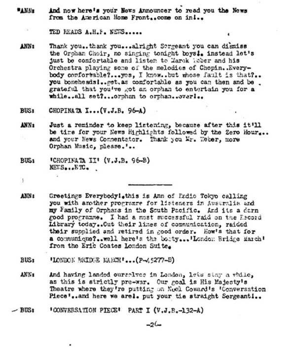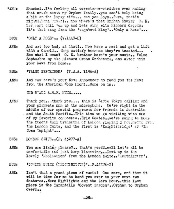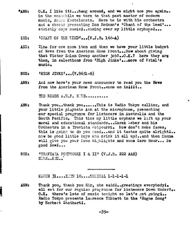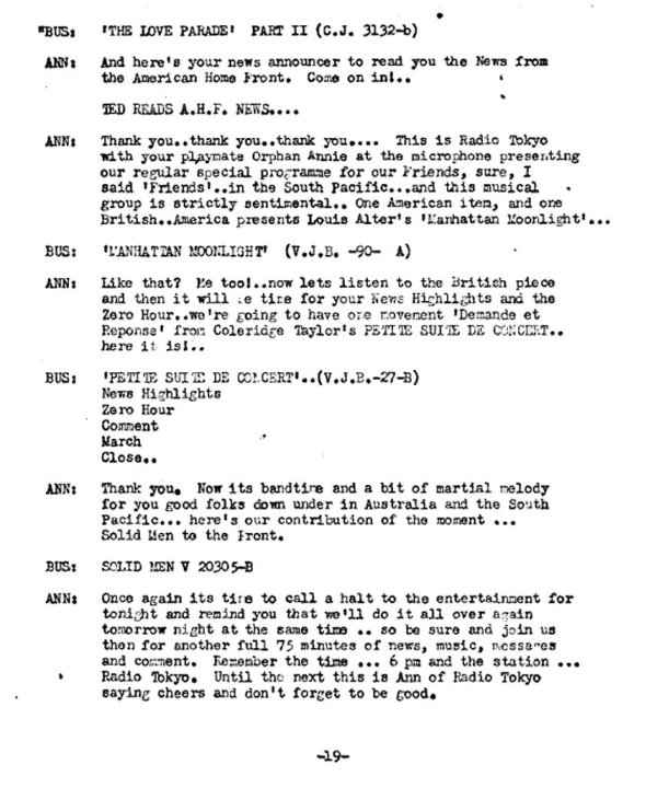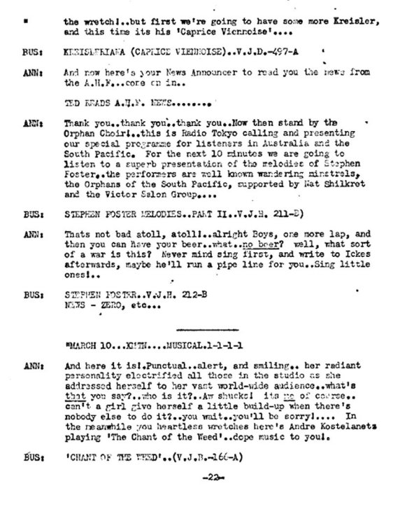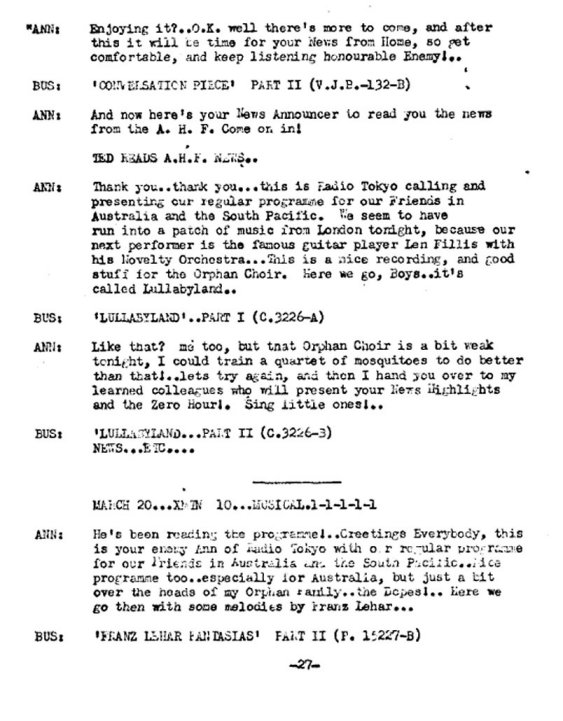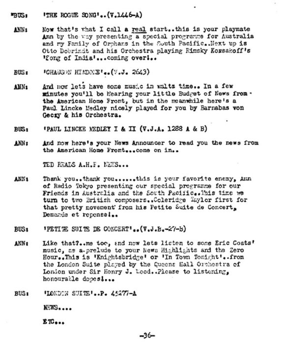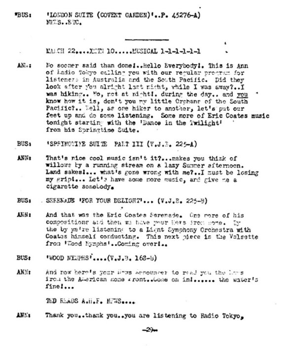 Some things I will just write a few words about, and some things I will include scans from the original work, especially things like the scripts for her broadcasts from Tokyo to American troops. It's a fascinating document to go through.
