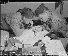 Lieutentant James Glatt, (left), and Lieutenant Cal Ferris, (right), complete last minute evacuation details as the last 300 residents of Japanese ancestry leave their Redondo Beach homes for an assembly center near Arcadia, California. |