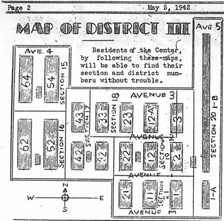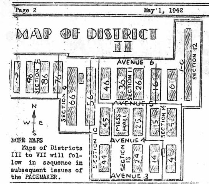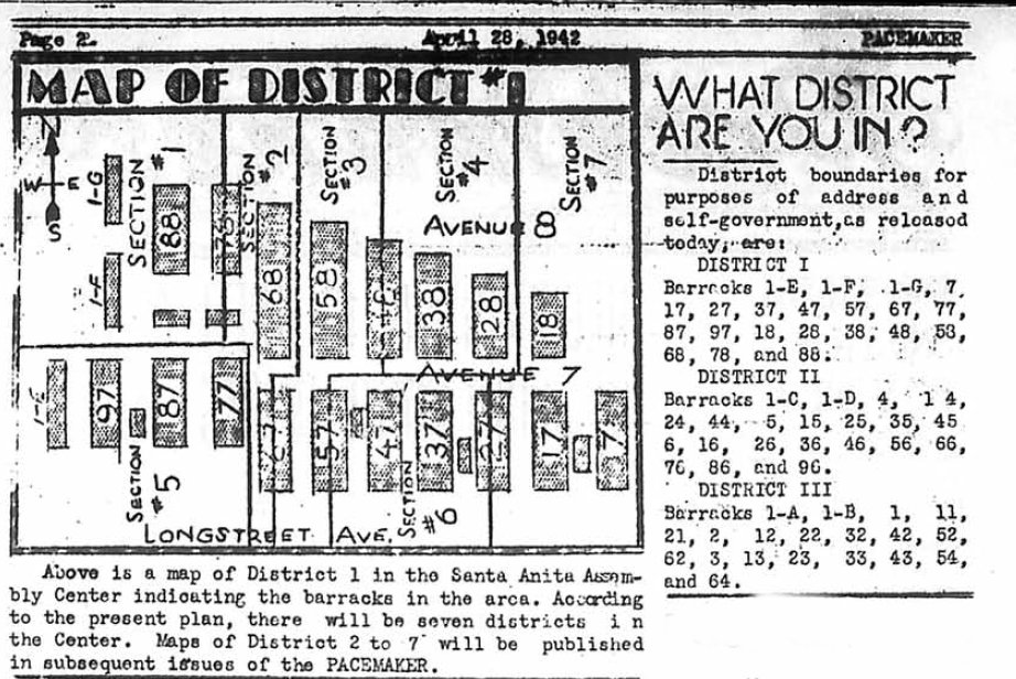 It's interesting to compare this first page to the first page of the other newsletter I've looked at so far, the one from Tanforan. Tanforan's newsletters generally tried to stay to a general theme for each page. There was sports, major news, editorials and a women's column, etc.
