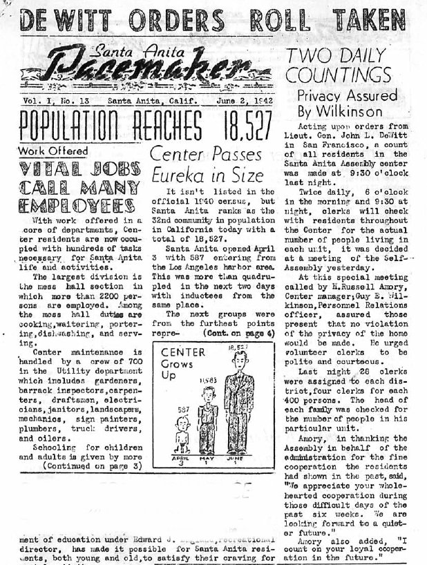 Part of the first page. DeWitt has order a twice-daily counting of the residents. The camp has reached 18,527 residents. There are also many job openings.