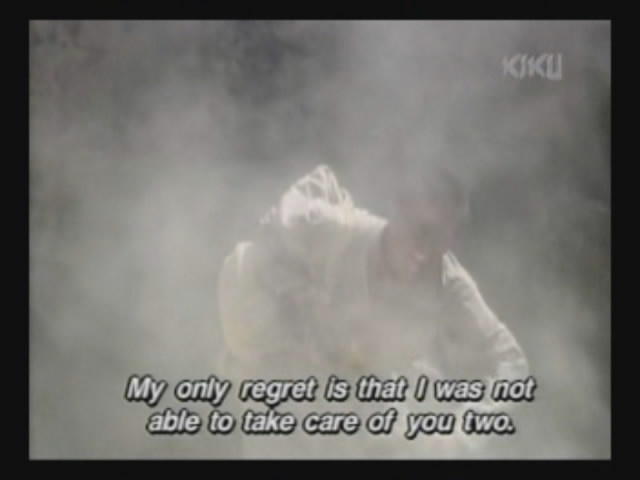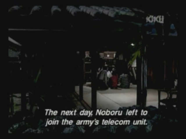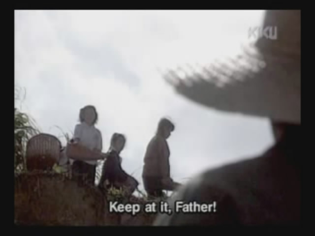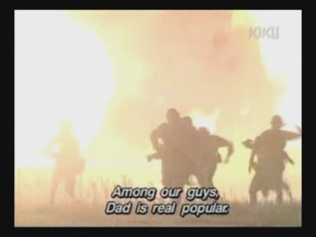 The father accidentally finds Noburu, the middle son. Noburu realizes his father ran away from the fight, but his own view on war has changed.