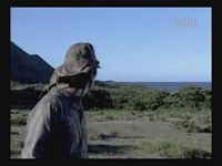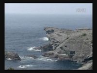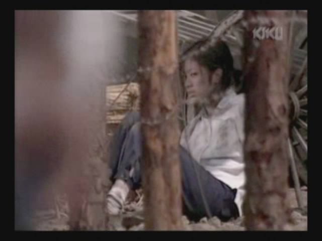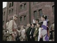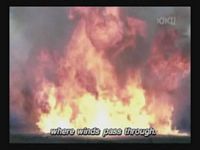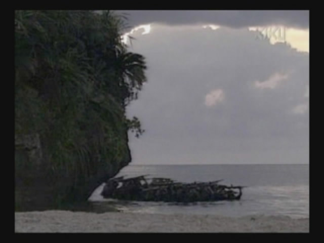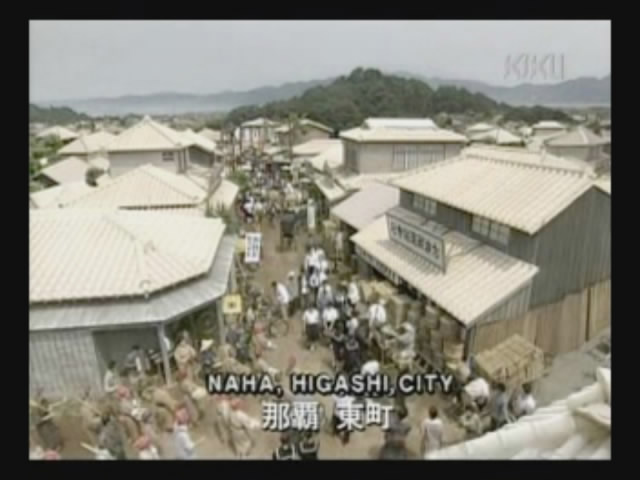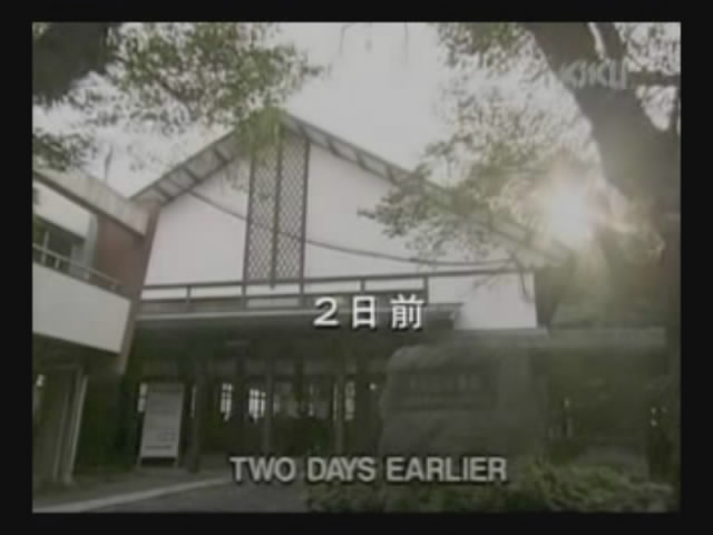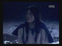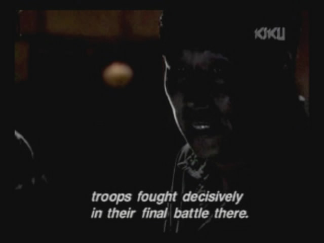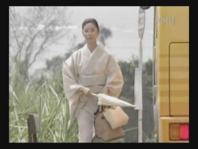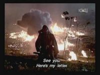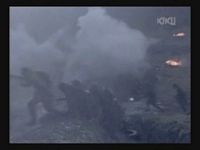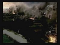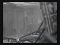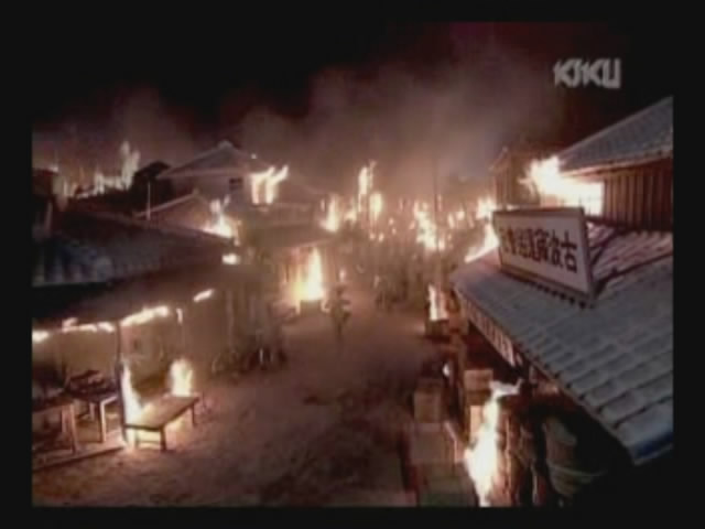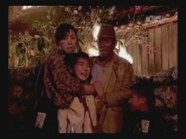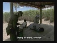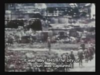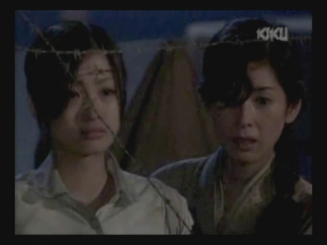 Just as Mie, one of the daughters, is about to jump off the cliff, the scene shifts to where the father has arrived at the ruins of Naha. (Why doesn't he take off the military outfit? There are bound to be some clothes in the wreckage that he can change into. As it is, it's like he's walking around with a bullseye painted on him.)