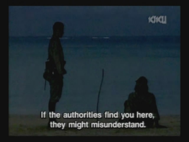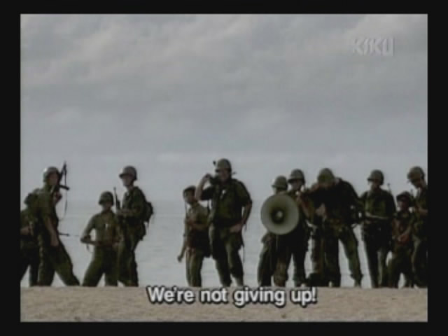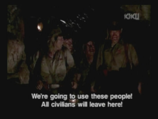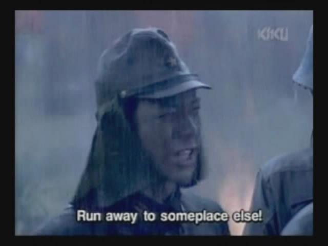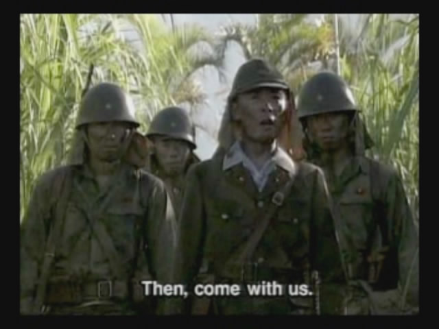A regular army soldier tells the older guys that, since they are part of the Okinawan Defense Force and not the actual army, they can flee.
