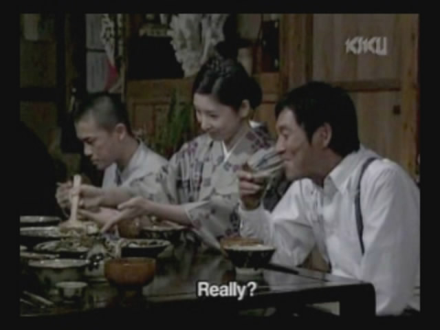 The father is from Osaka. Noriko asks him why he and his wife are living in Okinawa, and he says that they eloped.