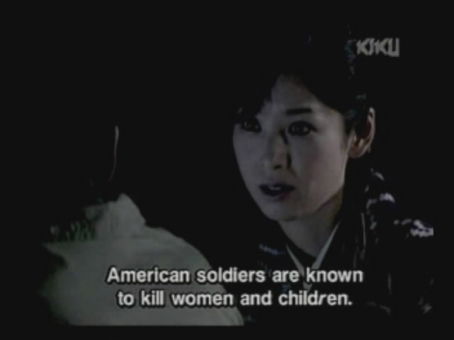 The film is also very realistic in dealing with the times. You see the attitude of many of the Japanese of the time; for example, that they were willing to “die for the Emperor.” You also see the result of actual rumors about how horribly civilians would be treated by the Americans, which led to many civilian suicides.