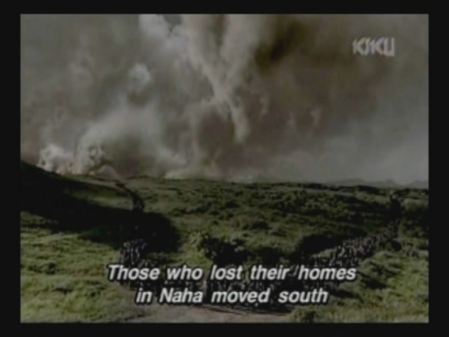 The family moves south to a place where they know someone they can move in with. The father is drafted for labor service, and the middle son visits the new home. He says he wants to join in the defense of the island. The eldest daughter plans to become a nurse. The father tells the two that they should live and not be so anxious to die for Japan, and the daughter implies he's a traitor for thinking that way.