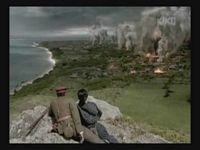 The father's luck isn't much better. He and the group he's in get to the scene of the battle. Notice the line of American tanks approaching.