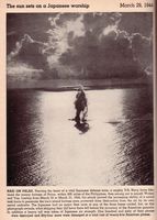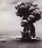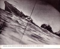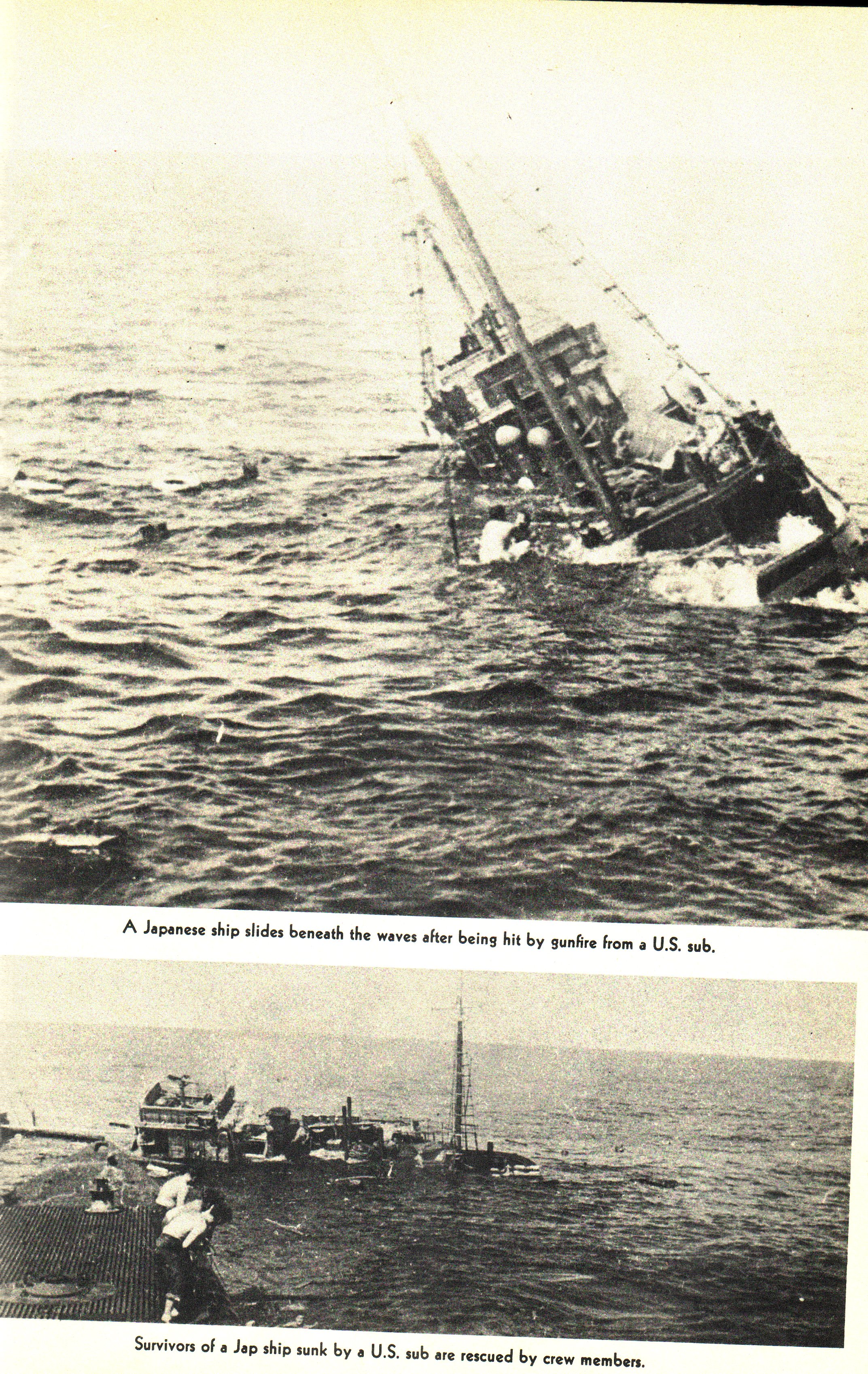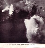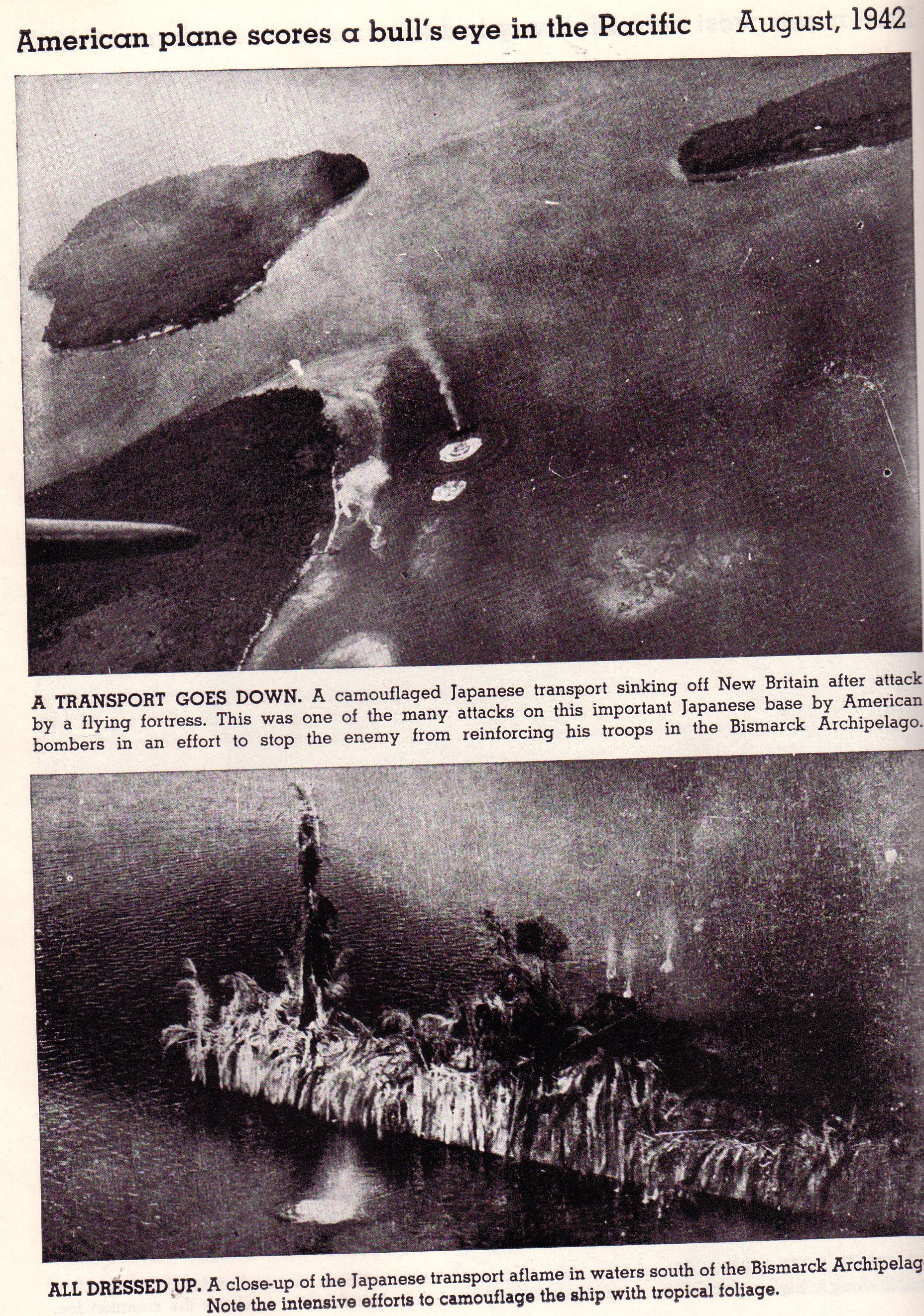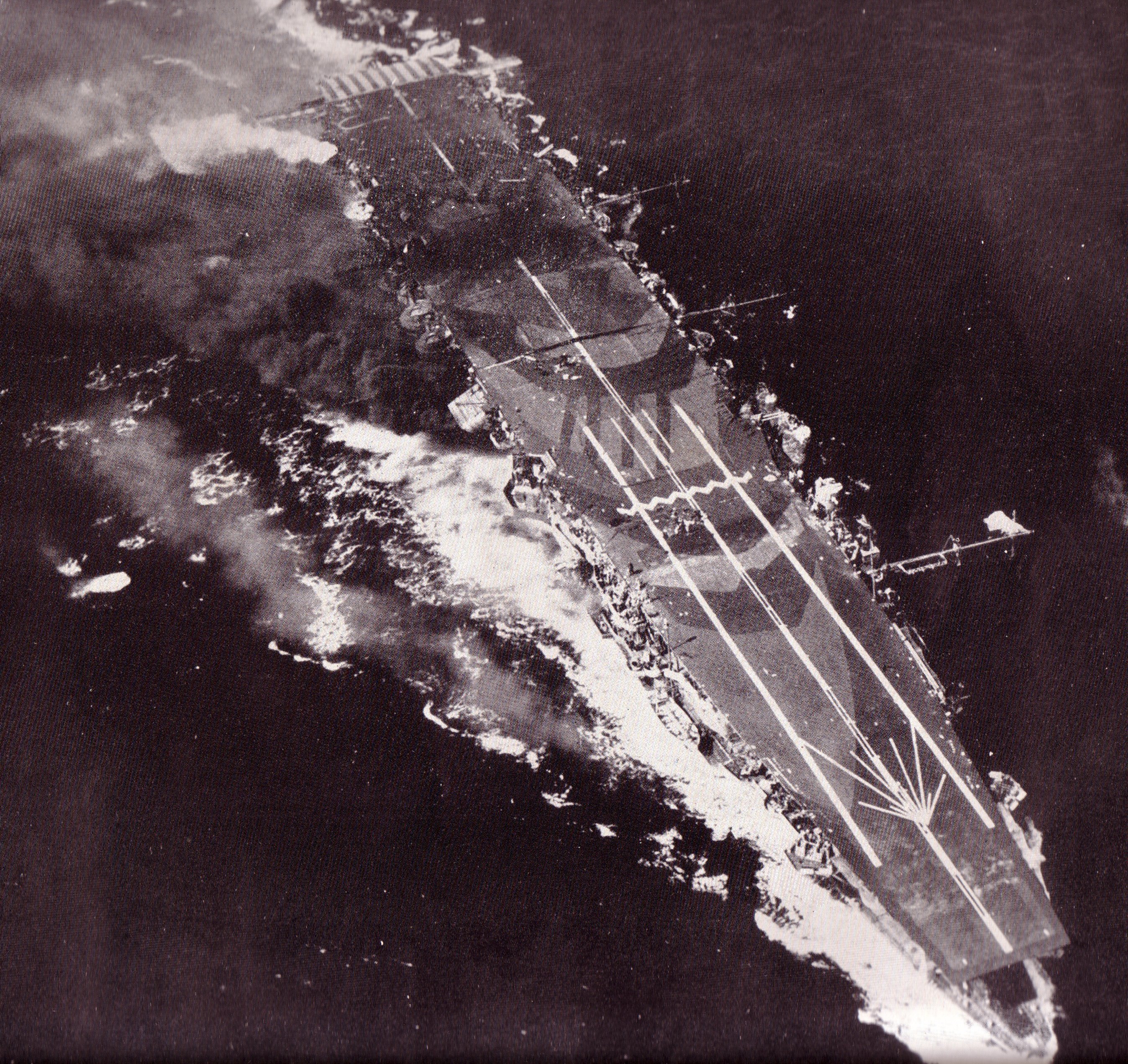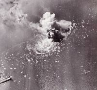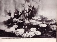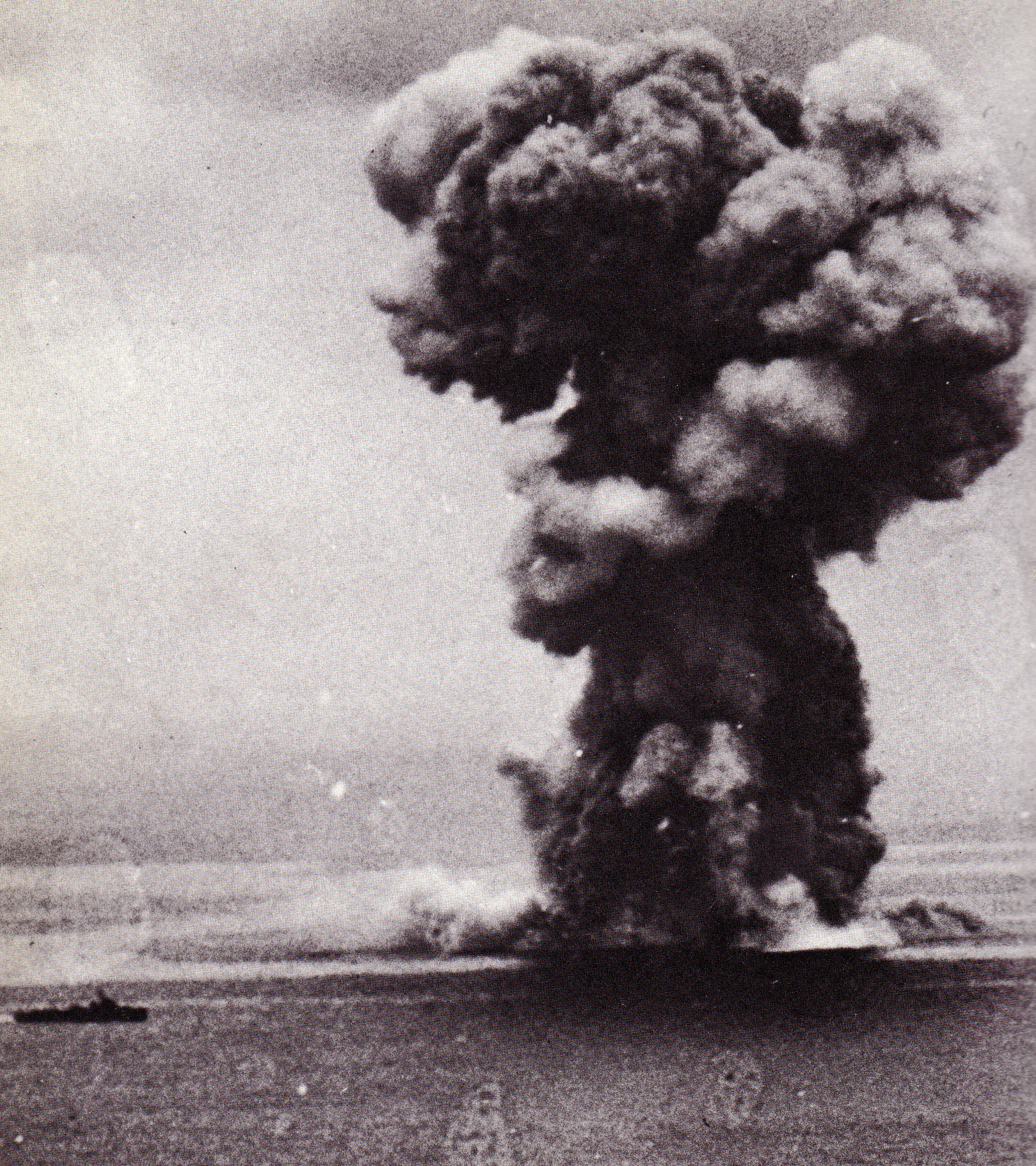"The mightiest Japanese battleship, the Yamoto, is destroyed.It took 8 bombs and 8 torpedoes to do the job."